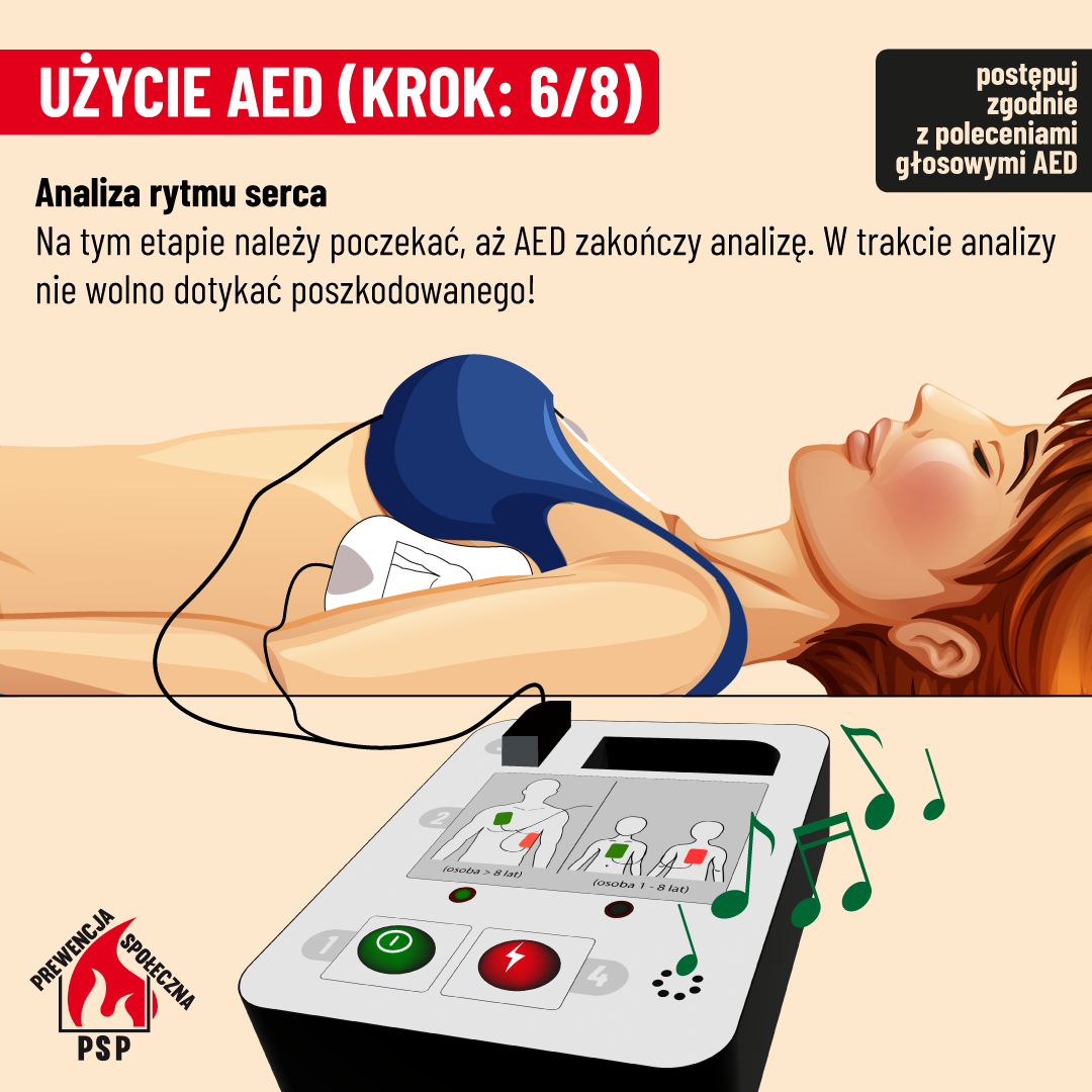 Użycie AED "krok po kroku":