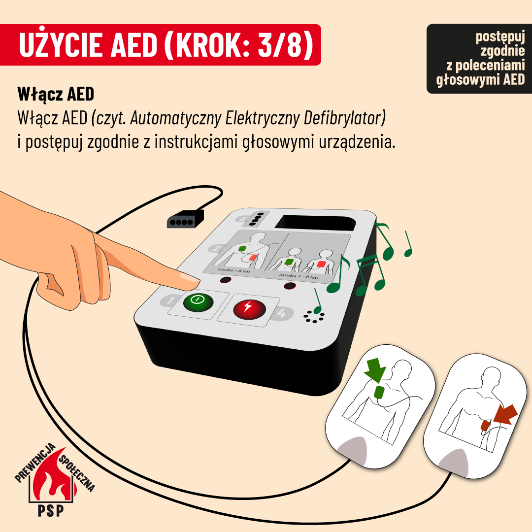 Źródło: Prewencja Społeczna KG PSP - https://www.gov.pl/web/kgpsp/AED