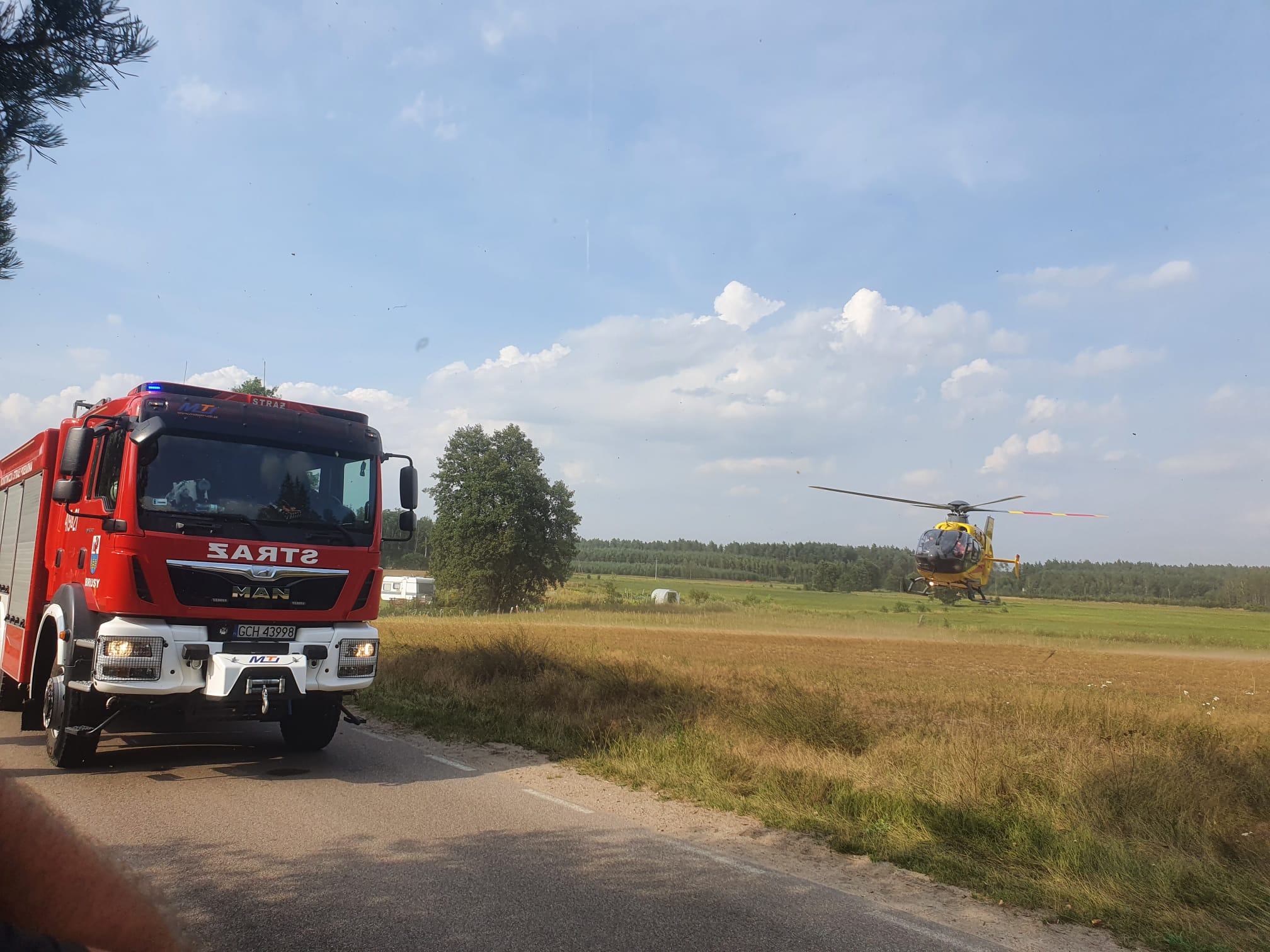 19 lipca 2022 o godz. 14:55 do Stanowiska Kierowania Komendanta Powiatowego PSP w Chojnicach wpłynęło zgłoszenie, że na drodze powiatowej przed miejscowością Asmus gm. Brusy samochód osobowy wypadł z drogi i uderzył w drzewo, z informacji przekazanej z Wojewódzkiego Centrum Powiadamiania Ratunkowego wynikało, że w pojeździe znajdują się trzy zakleszczone osoby.