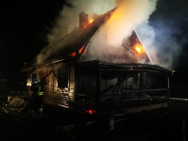 Po przybyciu na miejsce zdarzenia pierwszych zastępów budynek o konstrukcji drewnianej objęty był w całości ogniem. Na miejscu był już patrol Policji oraz osoba opiekująca się posesją podczas nieobecności właścicieli. Z pozyskanych informacji wewnątrz budynku nie znajdowały się żadne osoby a dodatkowym zagrożeniem miała być butla gazowa w pomieszczeniu kuchennym. Po zabezpieczeniu miejsca zdarzenia przystąpiono do działań gaśniczych zarówno z zewnątrz i jak i wewnątrz budynku. Gdy sytuacja była już opanowana została wyniesiona i schłodzona butla gazowa, która po sprawdzeniu okazała się pusta. Po ugaszeniu pożaru przystąpiono do koniecznych prac rozbiórkowych w celu dotarcia do ukrytych zarzewi ognia i dogaszenia nadpalonych elementów konstrukcji oraz elementów wyposażenia znajdującego się w środku. Na koniec sprawdzono wszystko kamerą termowizyjną.