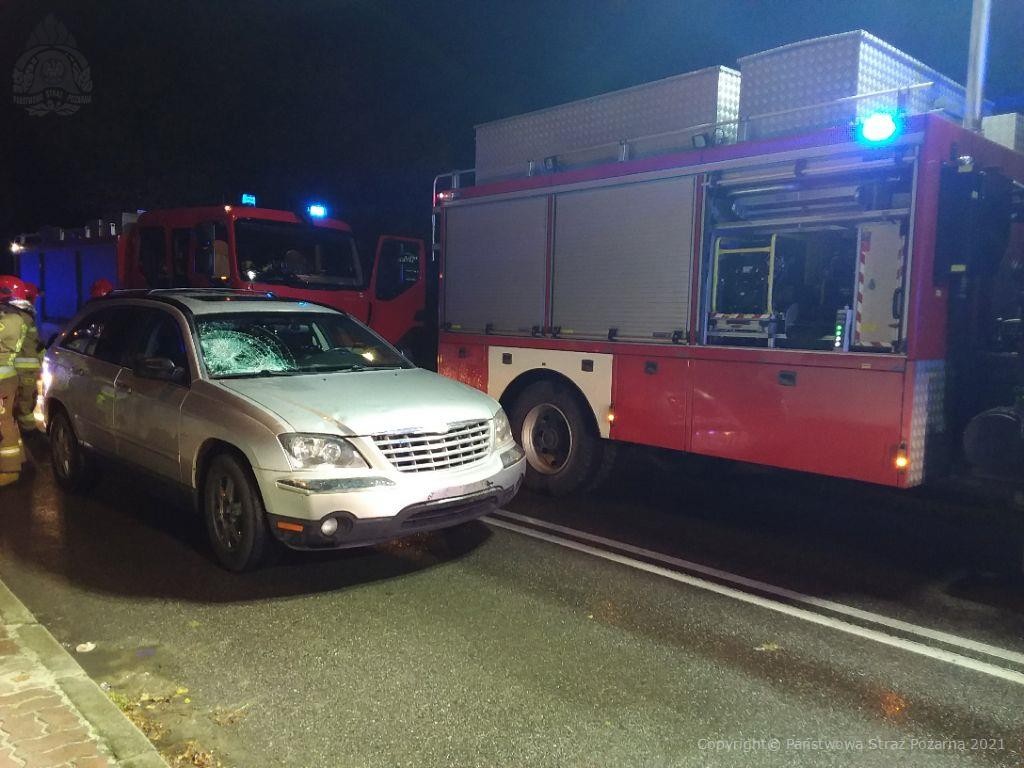 Po przybyciu na miejsce zdarzenia pierwszych zastępów stwierdzono że, doszło do potrącenia przez samochód osobowy dwóch osób. Działania polegały na zabezpieczeniu miejsca zdarzenia, udzieleniu kwalifikowanej pierwszej pomocy osobom biorącym udział w zdarzeniu, przekazaniu ich pod opiekę Zespołowi Ratownictwa Medycznego oraz oświetlaniu miejsca zdarzenia na czas działań dochodzeniowo – śledczych Policji. Po około dwóch godzinach zastępy zakończyły działania i wróciły do bazy.