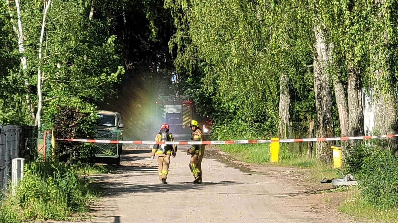 Po przybyciu na miejsce zdarzenia zastępów Straży Pożarnej stwierdzono, że w wyniku prowadzonych prac ziemnych na jednej z posesji na ul. Leśnej doszło do uszkodzenia gazociągu średniego ciśnienia o średnicy 63mm.