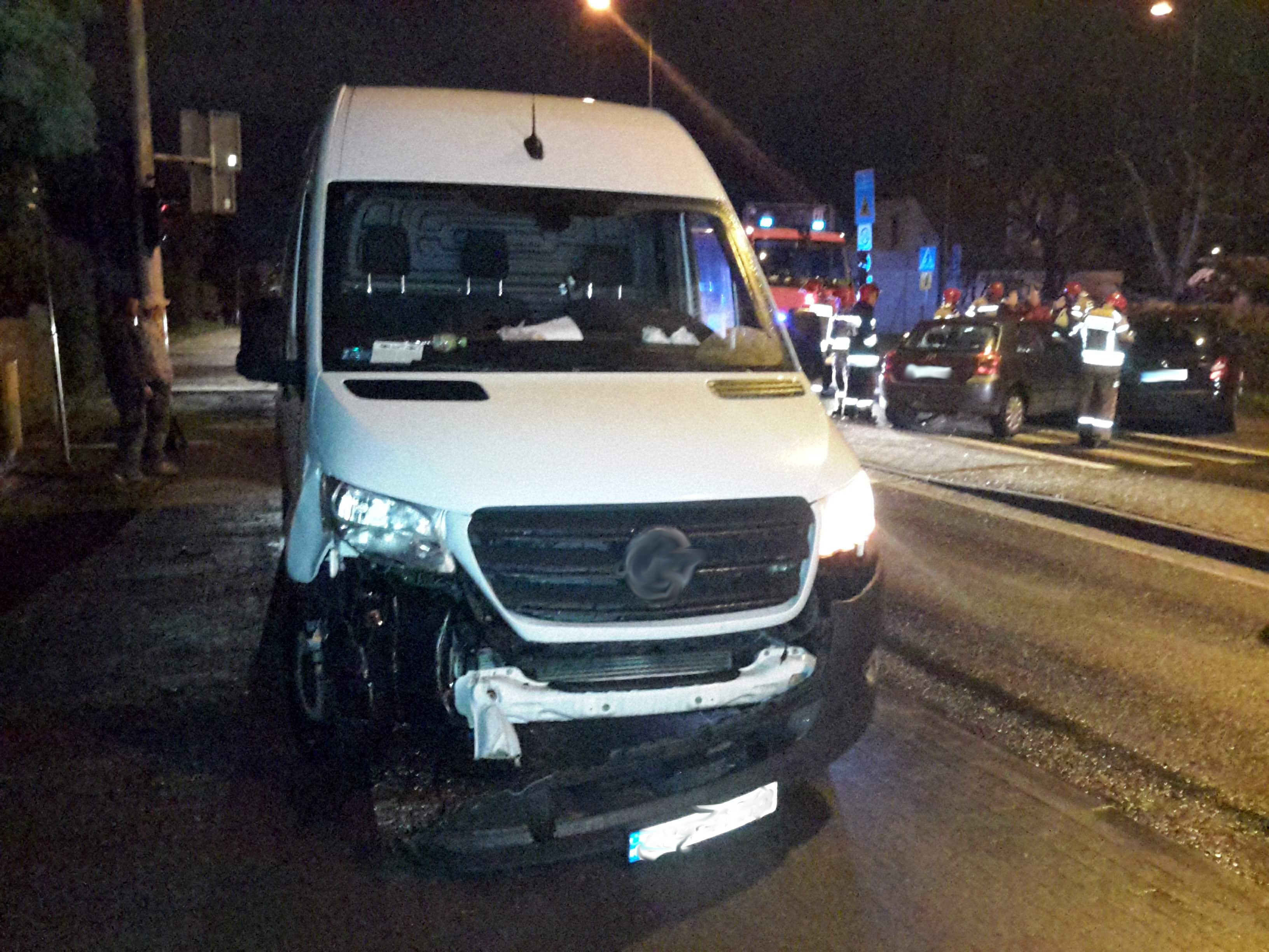 Po przybyciu na miejsce zdarzenia zastępów z JRG Chojnice stwierdzono, że doszło do zderzenia dwóch samochodów osobowych i samochodu dostawczego. Pojazdami podróżowały cztery osoby. Uszkodzona została również infrastruktura drogowa. Działania polegały na zabezpieczeniu miejsca zdarzenia, odłączeniu zasilania w pojazdach oraz udzieleniu kwalifikowanej pierwszej pomocy osobie poszkodowanej, przekazaniu jej przybyłemu na miejsce Zespołowi Ratownictwa Medycznego oraz oświetlaniu miejsca zdarzenia. Po około półtorej godzinie zastępy wróciły do bazy.