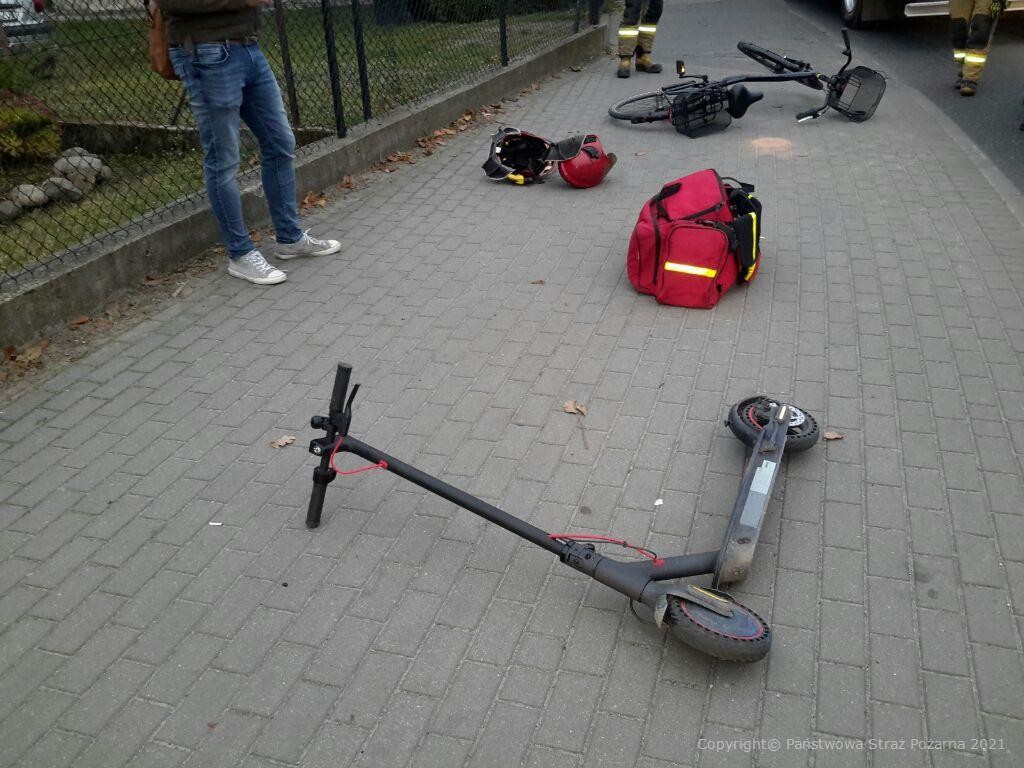 Chojnice ul. Zielona - wypadek rowerzysty z kierującym hulajnogą
