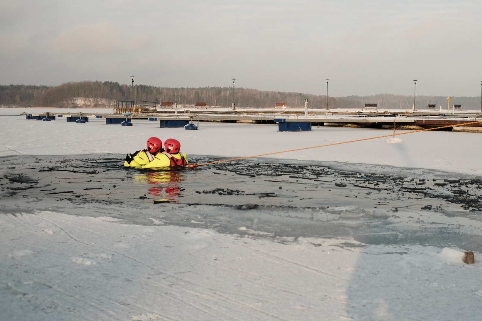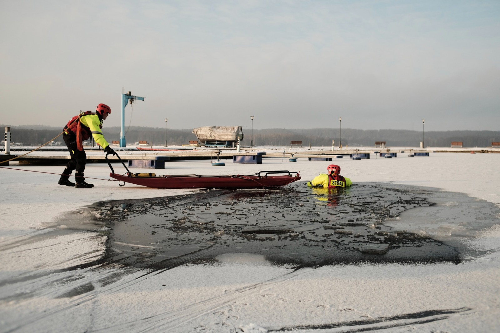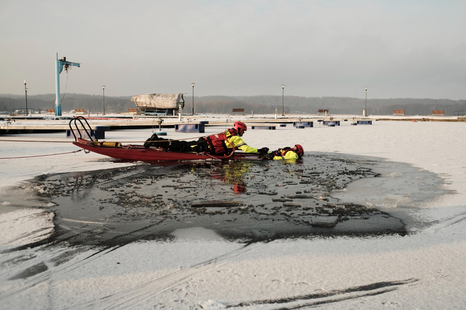 Ćwiczone były techniki poruszania się po lodzie, dotarcia do osoby poszkodowanej, podjęciu jej z wody i ewakuacji na brzeg.