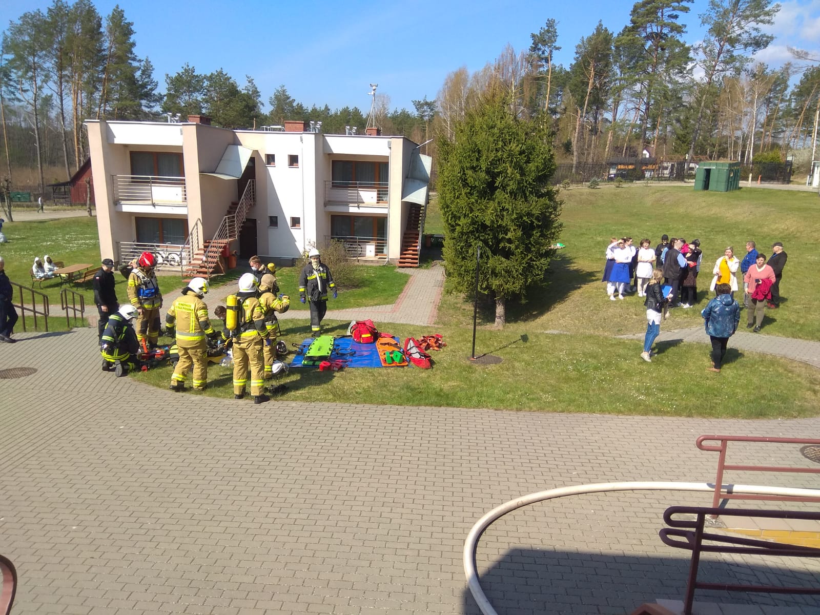 Działania Jednostek Ochrony Przeciwpożarowej polegały na zabezpieczeniu miejsca zdarzenia, ewakuacji osób poszkodowanych z pomieszczenia mesy na pierwszym piętrze budynku oraz udzieleniu kwalifikowanej pierwszej pomocy. Równolegle trwało oddymianie i przewietrzanie pomieszczeń.