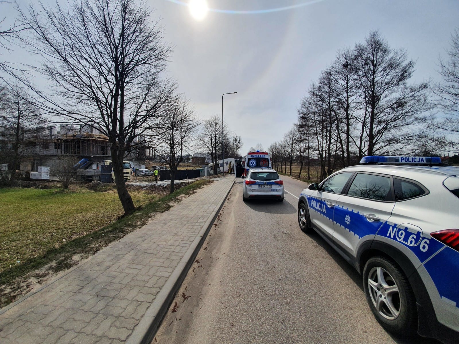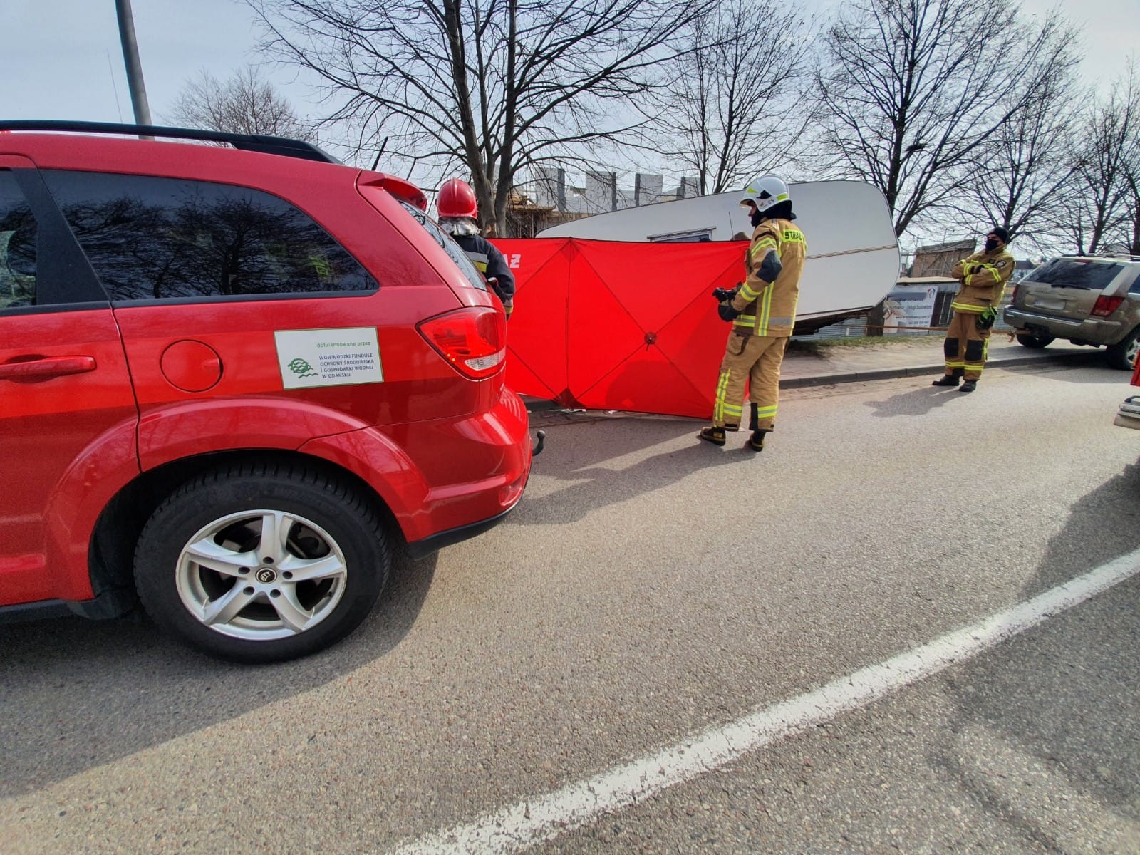 Po przybyciu na miejsce zdarzenia stwierdzono kobietę przygniecioną do przydrożnego drzewa przez przyczepę kempingową, która odczepiła się od pojazdu który ją ciągnął. W momencie przybycia pierwszych zastępów świadkowie zdarzenia uwolnili kobietę odsuwając przyczepę. Poszkodowana kobieta była nieprzytomna, bez oddechu.