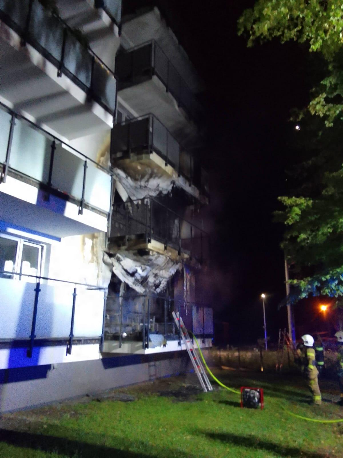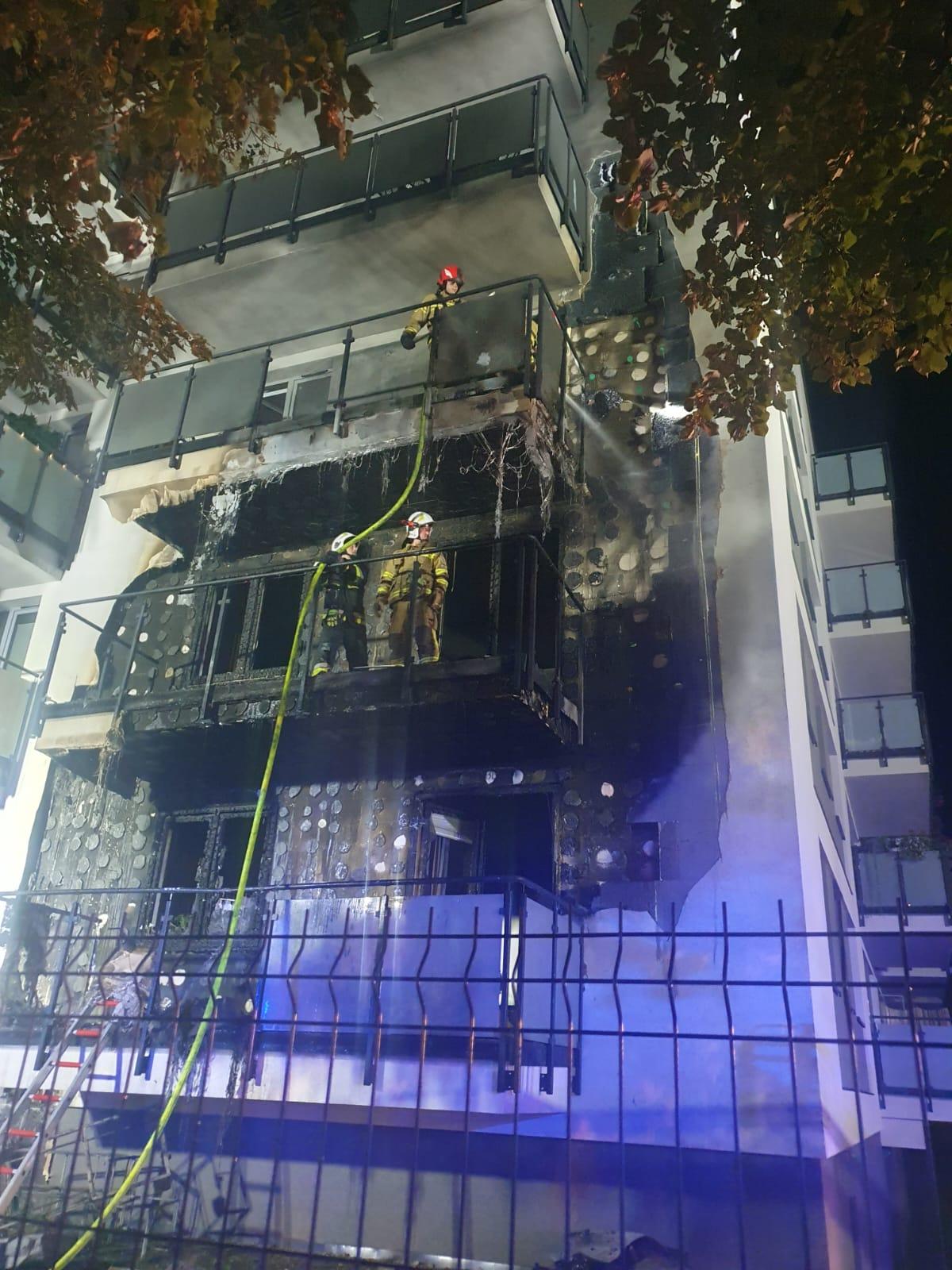 Po przybyciu na miejsce zdarzenia pierwszych zastępów okazało się, że ogniem objęte są trzy balkony od parteru do trzeciego piętra oraz styropianowa termoizolacja budynku. Lokatorzy budynku ewakuowali się na zewnątrz przed przybyciem Jednostek Ochrony Przeciwpożarowej