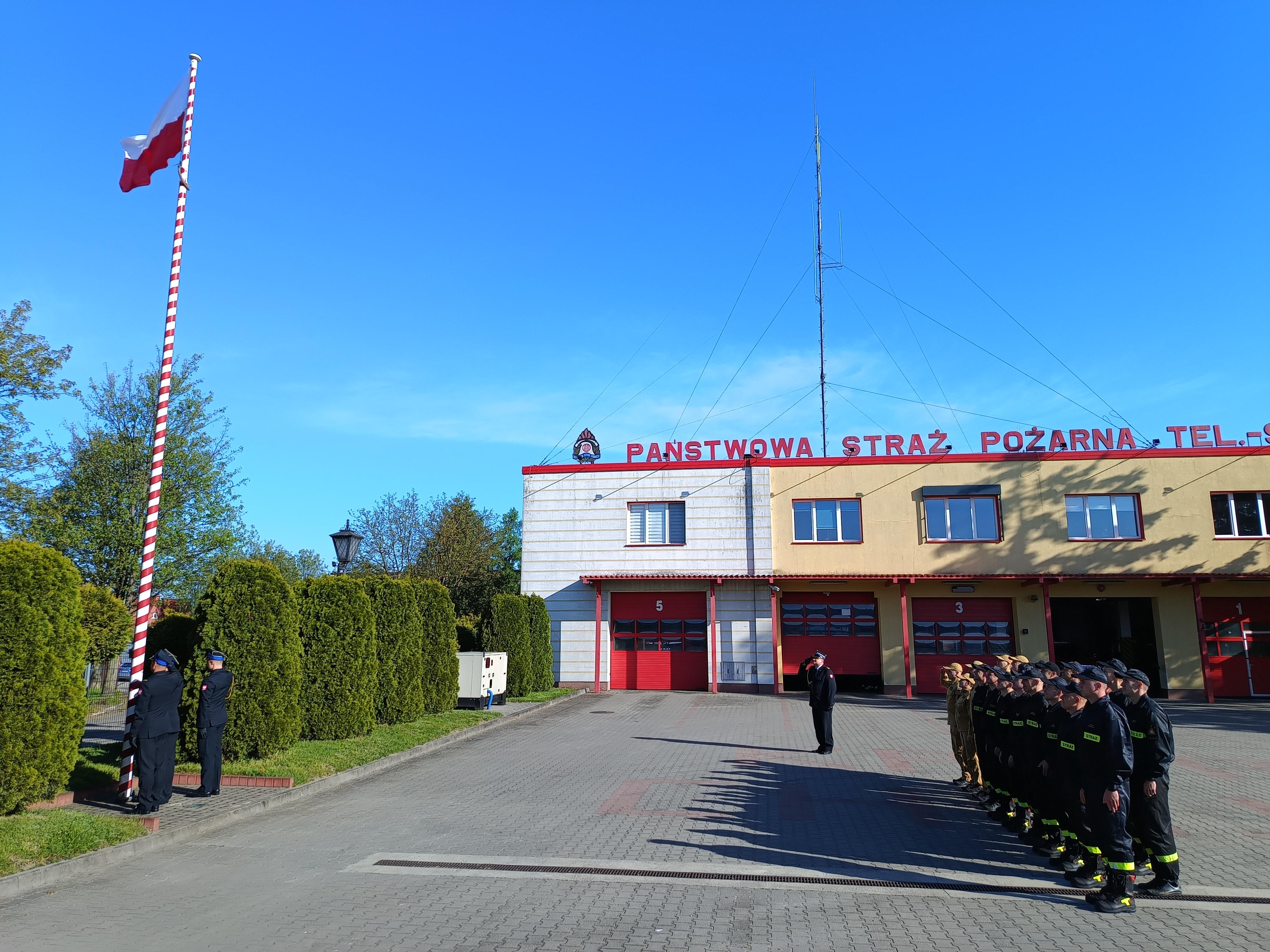 2 maja 2024 roku, punktualnie o 8:00, w związku z obchodzonym Dniem Flagi Rzeczypospolitej Polskiej, w Komendzie Powiatowej Państwowej Straży Pożarnej w Chojnicach, odbyła się zmiana służby, podczas której dokonano uroczystego podniesienia Flagi na maszt.