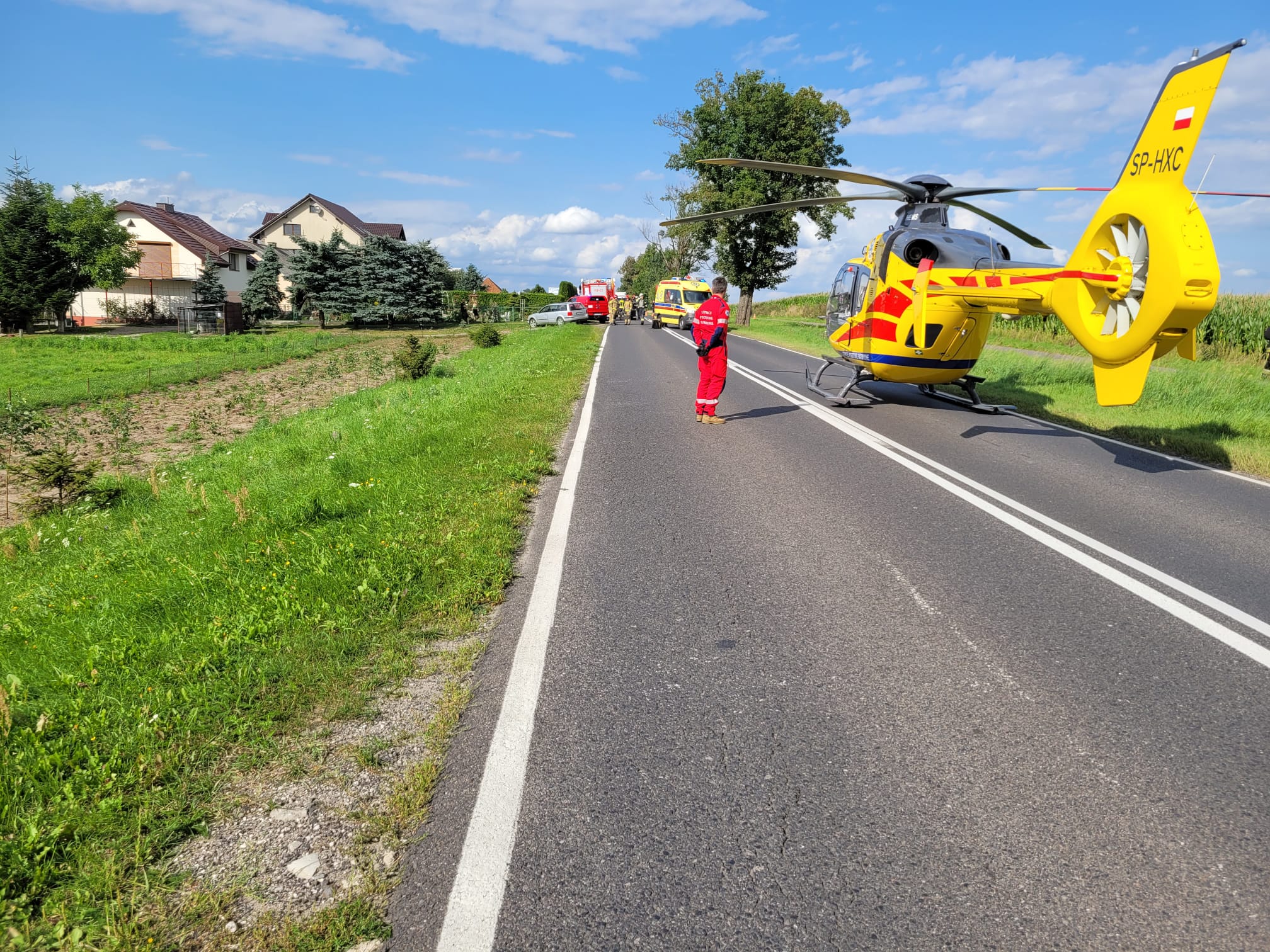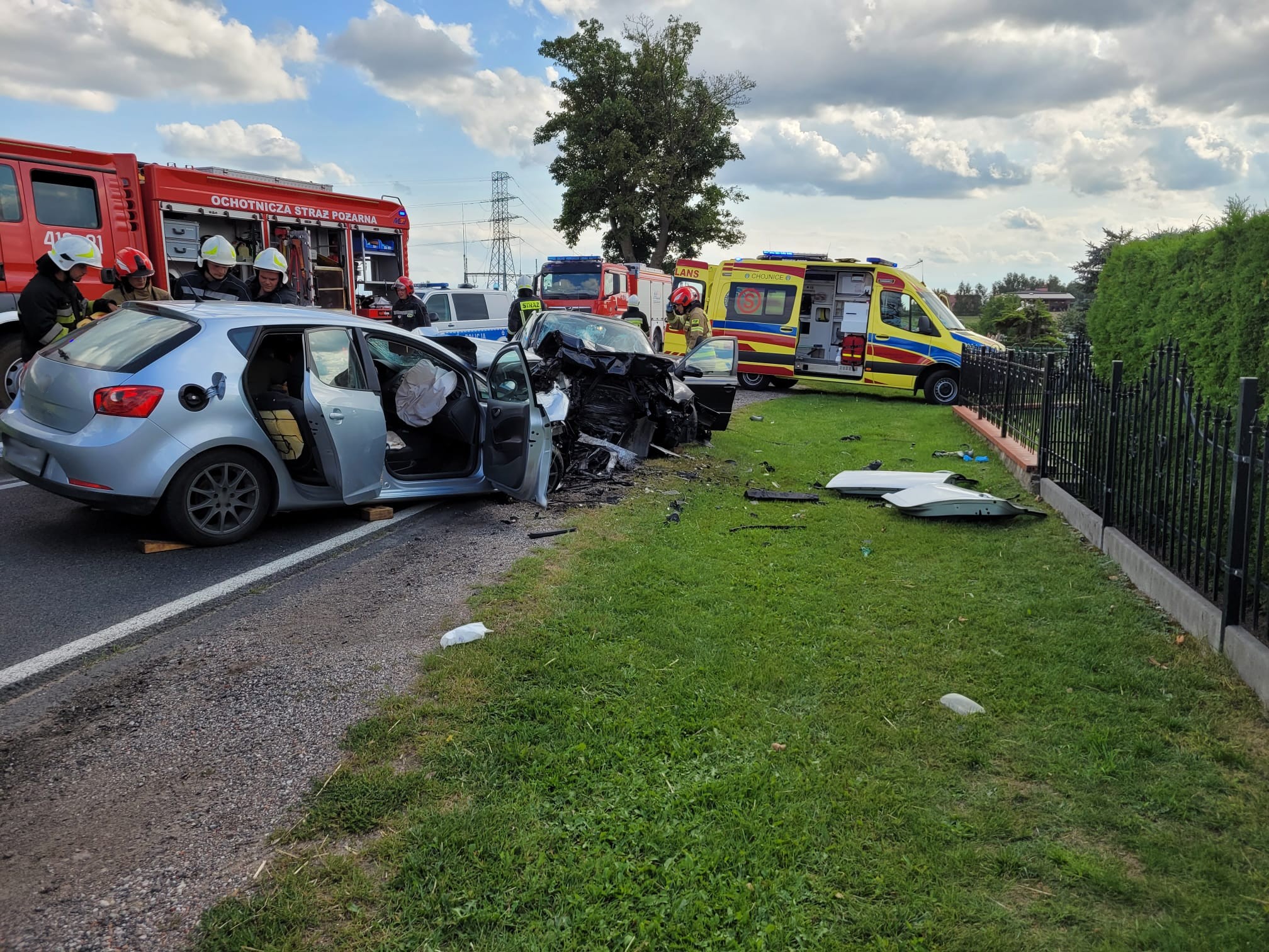 Działania Jednostek Ochrony Przeciwpożarowej polegały na zabezpieczeniu miejsca zdarzenia, wykonaniu dostępu do osób zakleszczonych w pojazdach oraz ewakuacji pod nadzorem Kierownika Zespołu Ratownictwa Medycznego ww. osób. Decyzją Kierującego Akcją Medyczną jedna osoba została odwieziona karetką pogotowia do szpitala w Chojnicach a druga helikopterem Lotniczego Pogotowia Ratunkowego do szpitala w Bydgoszczy. Jednocześnie druhowie pomagali Funkcjonariuszom Policji w organizacji ruchu oraz objazdów dla miejsca zdarzenia. Kolejnym etapem zabezpieczono wycieki płynów eksploatacyjnych sorbentem oraz uprzątnięto jezdnię z elementów karoserii pojazdów. Po około trzech godzinach zastępy zakończyły działania i wróciły do bazy.