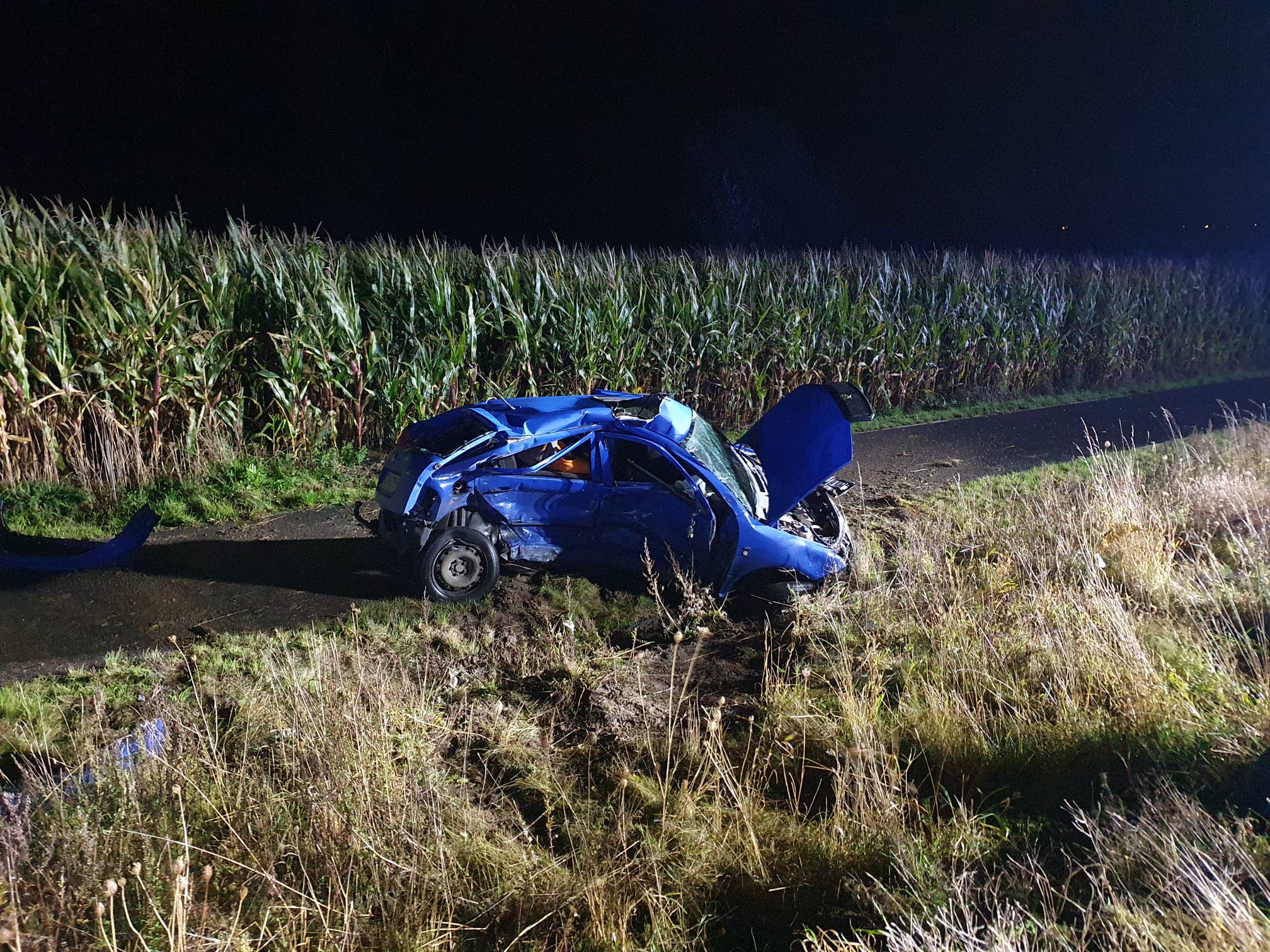 Po przybyciu na miejsce zdarzenia pierwszych zastępów stwierdzono, że doszło do zderzenia dwóch samochodów osobowych, w wyniku czego obrażenia odniosły cztery osoby. Ruch w miejscu wypadku został całkowicie zablokowany.