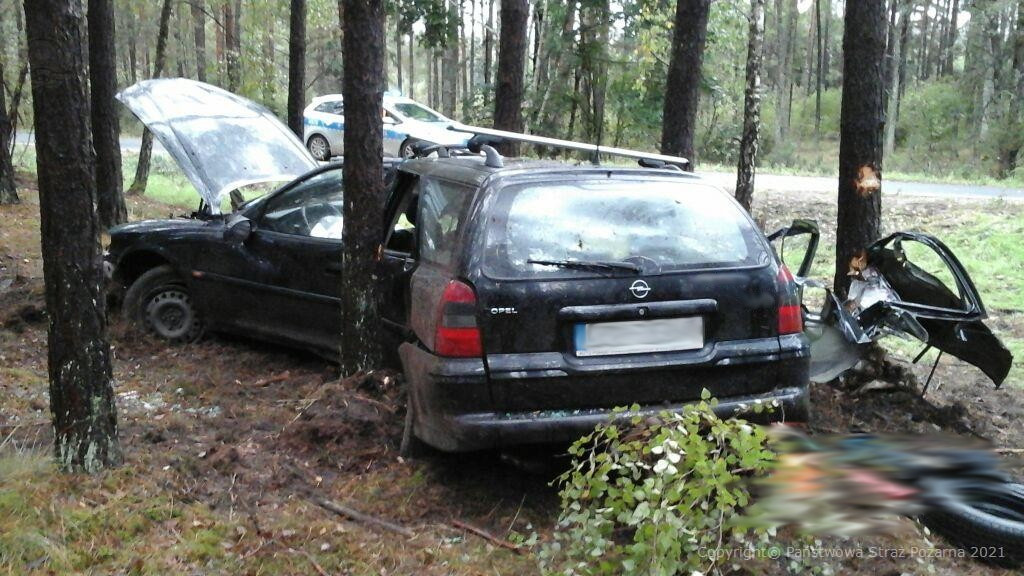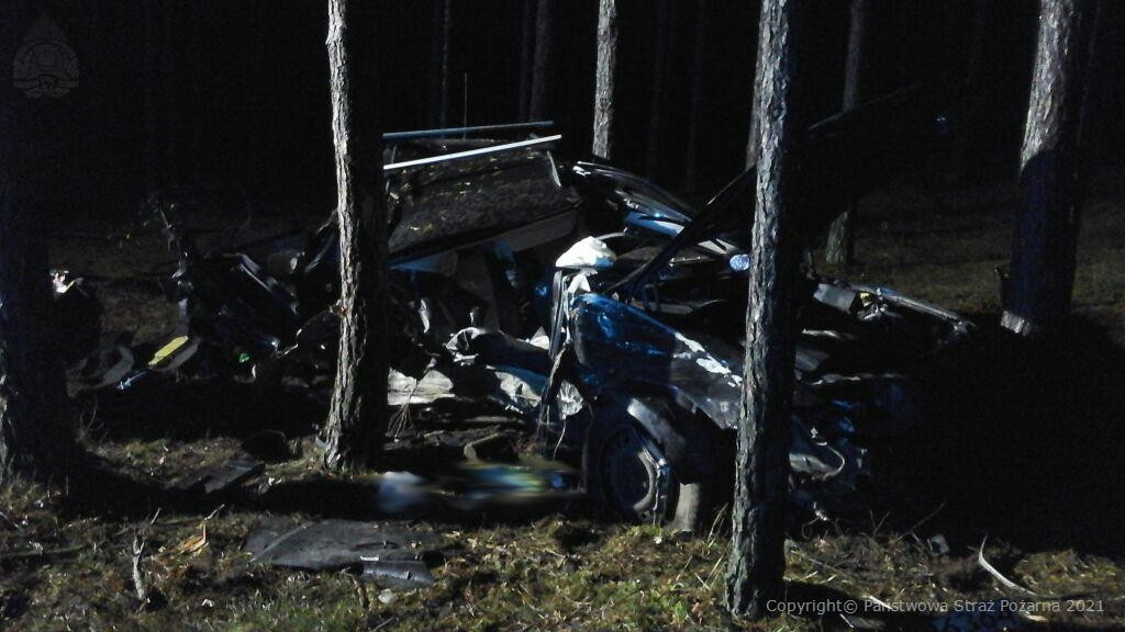 Po przybyciu na miejsce zdarzenia pierwszych zastępów stwierdzono że, samochód osobowy marki Opel Vectra wpadł w poślizg. W wyniku poślizgu samochód wypadł z drogi i uderzył w drzewa w przydrożnym lesie. Samochodem podróżowała jedna osoba, która w chwili przyjazdu zastępów JOP była pod opieką załogi ZRM. Działania polegały na zabezpieczeniu miejsca zdarzenia, oświetlaniu terenu na czas czynności dochodzeniowo – śledczych Policji.