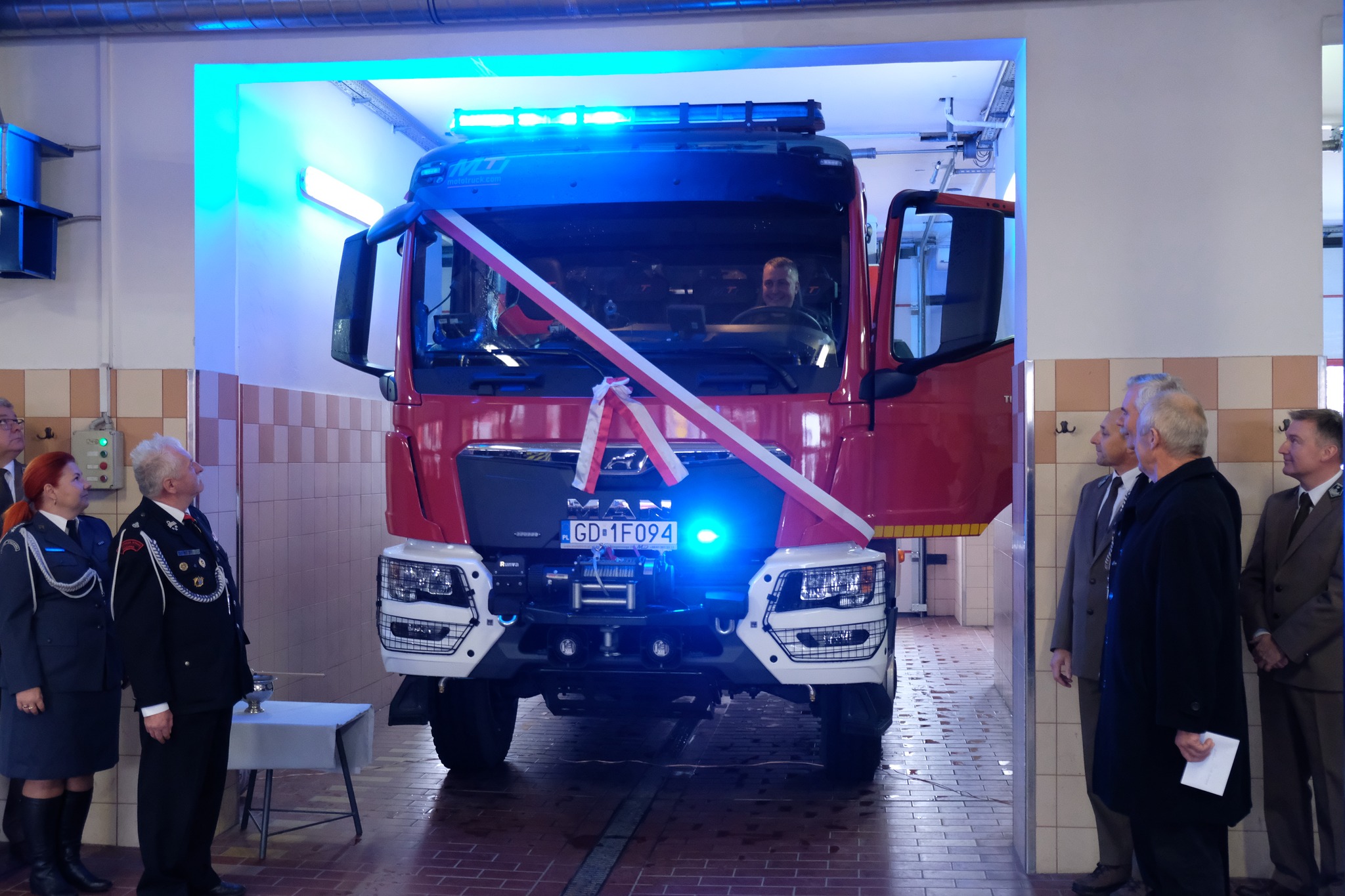 Podczas uroczystości został przekazany i poświęcony pojazd pożarniczy GCBA 5/32, który zastąpi dotychczas używany pojazd. Nowy samochód wyposażony jest w zbiornik wodny o pojemności 5.000 litrów, autopompę pożarniczą, zwijadło szybkiego natarcia, wyciągarkę elektryczną, agregat prądotwórczy oraz maszt oświetleniowy. Procedura zakupowa realizowana była przez Komendę Wojewódzką Państwowej Straży Pożarnej w Gdańsku. Całkowity koszt zakupu pojazdu wyniósł 1.099.620 zł, z czego: budżet państwa - 699.620 zł, dofinansowanie w ramach Wojewódzkiego Funduszu Wsparcia PSP woj. pomorskiego: Gmina Wiejska Chojnice w wysokości 200.000 zł, Starostwo Powiatowe w Chojnicach w wysokości 100.000 zł, Gmina Miejska Chojnice w wysokości 100.000 zł.