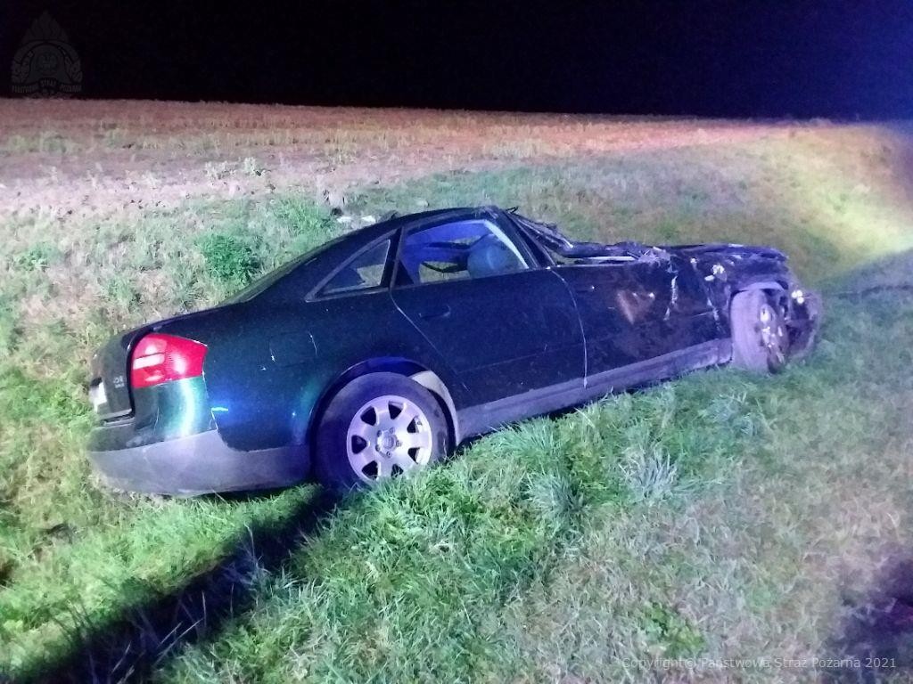 Po przybyciu na miejsce zdarzenia zastępów JRG Chojnice stwierdzono, że na czwartym kilometrze DW nr 240 doszło do dachowania samochodu osobowego marki Audi. W wyniku dachowania samochód osobowy wpadł do pobliskiego rowu. W chwili przyjazdu pierwszych zastępów droga była całkowicie zablokowana. W trakcie rozpoznania stwierdzono, że osoba poszkodowana oddaliła się z miejsca zdarzenia w nieznanym kierunku. Działania polegały na zabezpieczeniu miejsca zdarzenia, odłączeniu zasilania w pojeździe oraz poszukiwaniu osoby poszkodowanej.