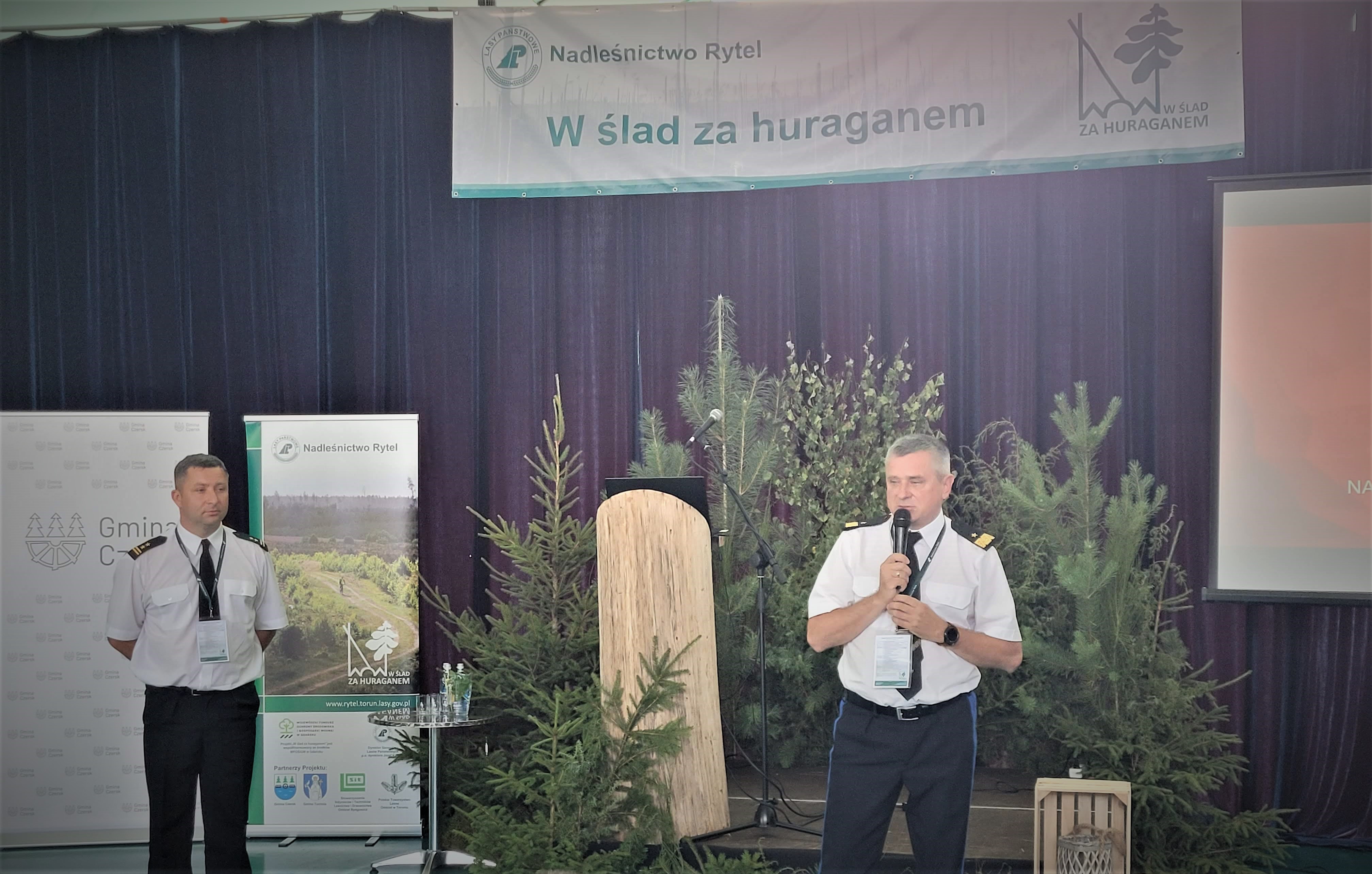 Obchody rozpoczęly się konferencją naukową zorganizowana przez Nadleśnictwo pt. “w ślad za huraganem” gdzie swoje referaty wygłosiło wielu znakomitych gości. Wśród referujących był nadbryg. Piotr Socha Pomorski Komendant Wojewódzki oraz bryg. Błażej Chamier Cieminski Komendant Powiatowy Państwowej Straży Pożarnej w Chojnicach.