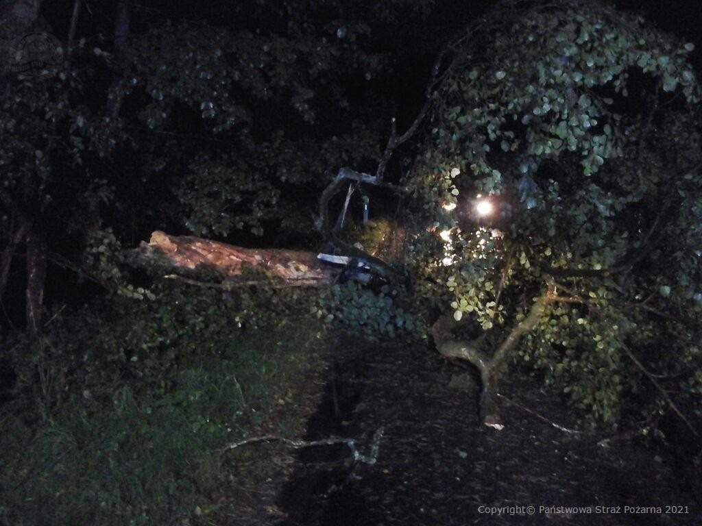 W ciągu minionej doby od godz. 20:37 23 września do godziny 5:00 24 września SK KP PSP w Chojnicach odnotowało łącznie 7 zdarzeń związanych z usuwaniem skutków silnego wiatru jaki wystąpił na terenie powiatu chojnickiego. Działania JOP polegały głównie na usuwaniu powalonych drzew i konarów tarasujących drogi.