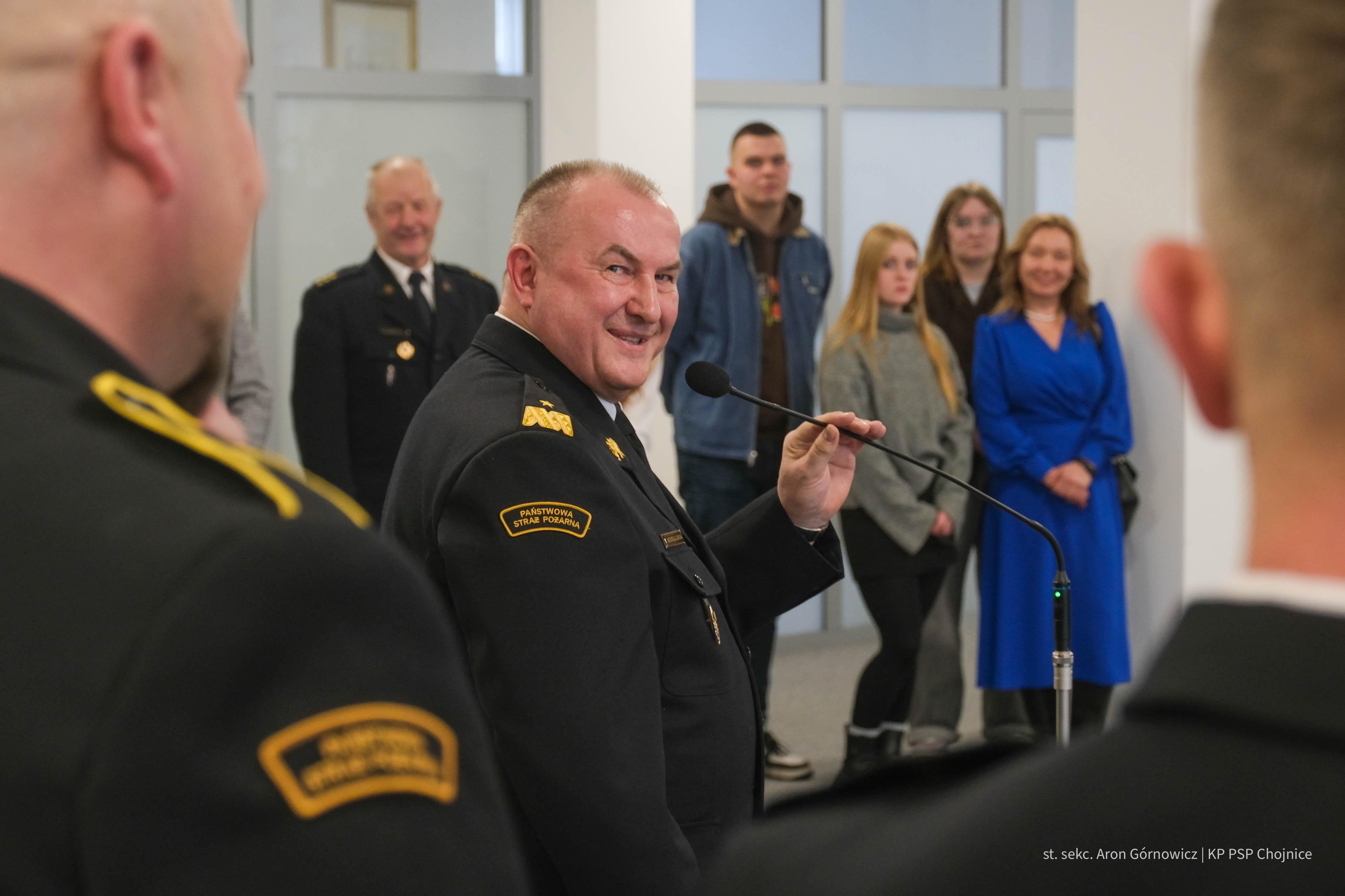 13 lutego 2026 roku w Komendzie Wojewódzkiej Państwowej Straży Pożarnej w Gdańsku odbyła się uroczysta zbiórka z okazji przejścia na zaopatrzenie emerytalne trzech funkcjonariuszy województwa pomorskiego: mł. bryg. Wojciech Maziec, st. kpt. Jakub Friedenberger oraz asp. Karol Górnowicz – wieloletniego funkcjonariusza Komendy Powiatowej Państwowej Straży Pożarnej w Chojnicach.