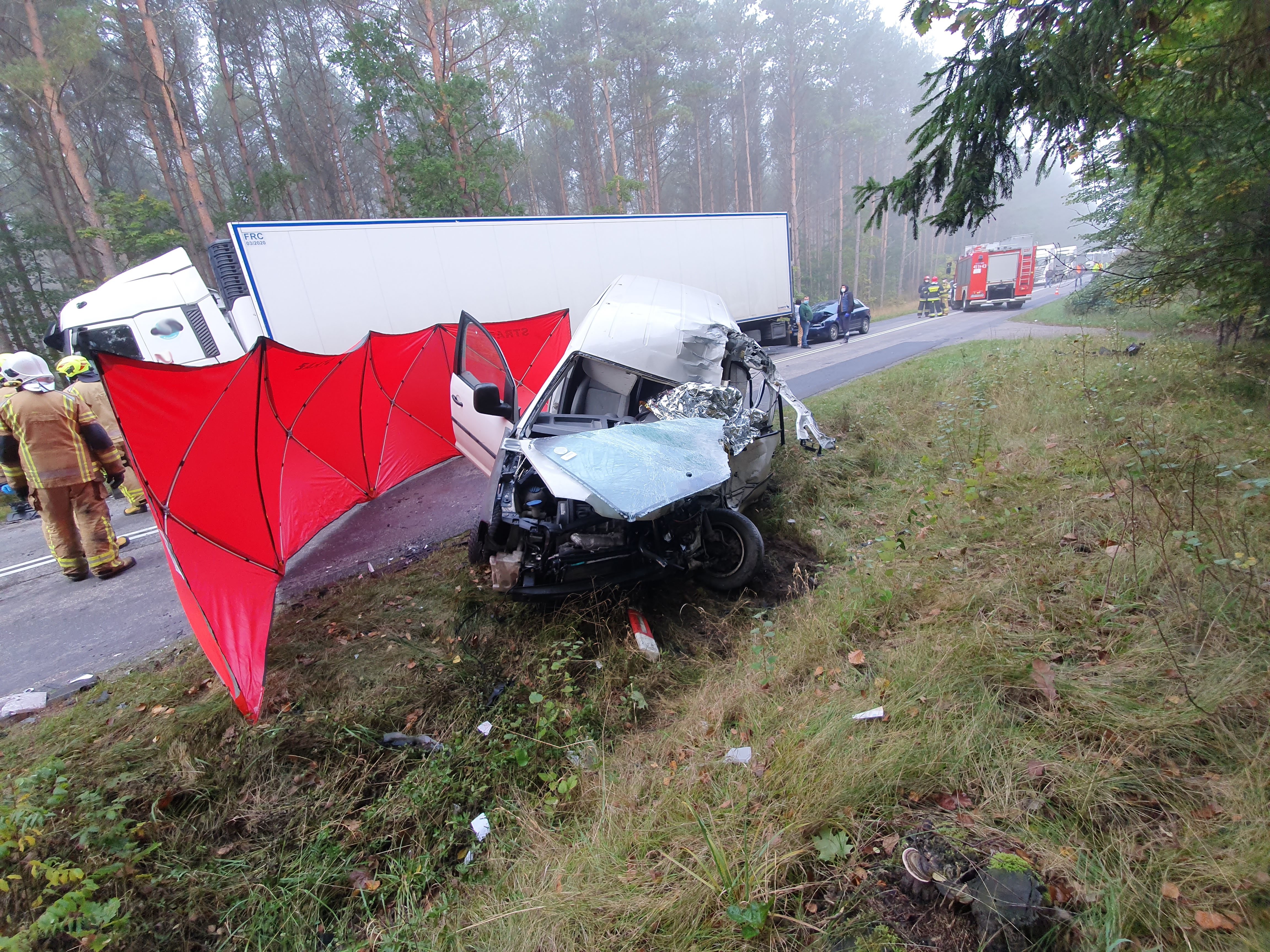 Działania zastępów polegały na zabezpieczeniu miejsca zdarzenia, odłączeniu zasilania w pojazdach, neutralizacji płynów eksploatacyjnych, które wyciekły z rozbitych pojazdów. Przybyły równocześnie z jop ZRM udzielił pomocy dwóm pozostałym uczestnikom zdarzenia, którzy nie wymagali jednak przewiezienia do szpitala.Następnie na miejsce zdarzenia zadysponowano Grupę Ratownictwa Technicznego z Tczewa w celu wydobycia samochodu ciężarowego z pobocza. Na podstawie decyzji Prokuratora przy pomocy sprzętu hydraulicznego ciało 34 letniego mężczyzny zostały wydobyte z rozbitego pojazdu. Podczas działań ruch na drodze wojewódzkiej nr 212 został całkowicie wstrzymany a Policja zorganizowała objazdy.