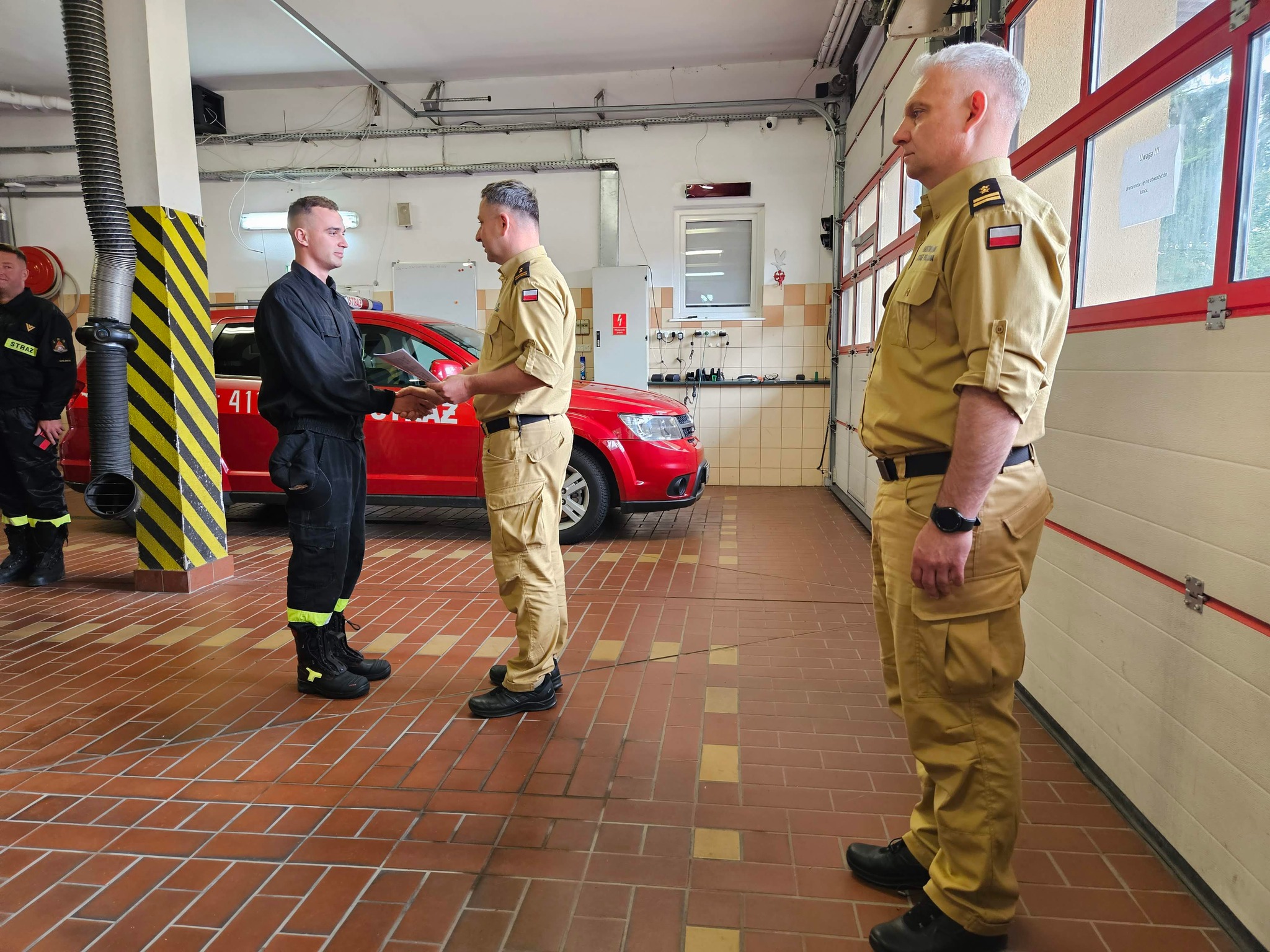 Podczas zmiany służby w jednostce Ratowniczo – gaśniczej odbyło się uroczyste wręczenia aktu mianowania dla mł. asp. Dominika Cysewskiego, absolwenta Szkoły Aspirantów PSP w Poznaniu, który rozpoczął służbę w chojnickiej komendzie.