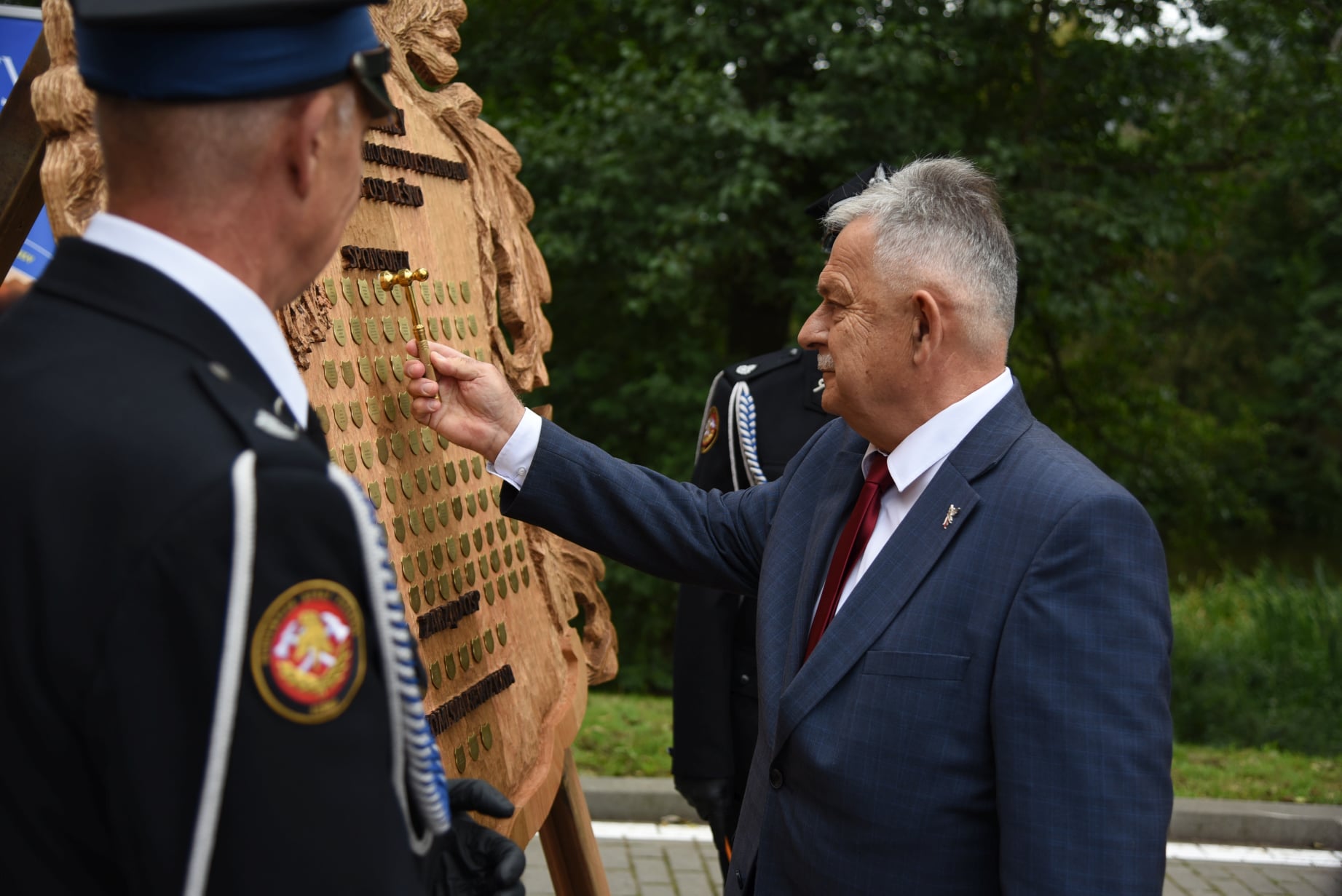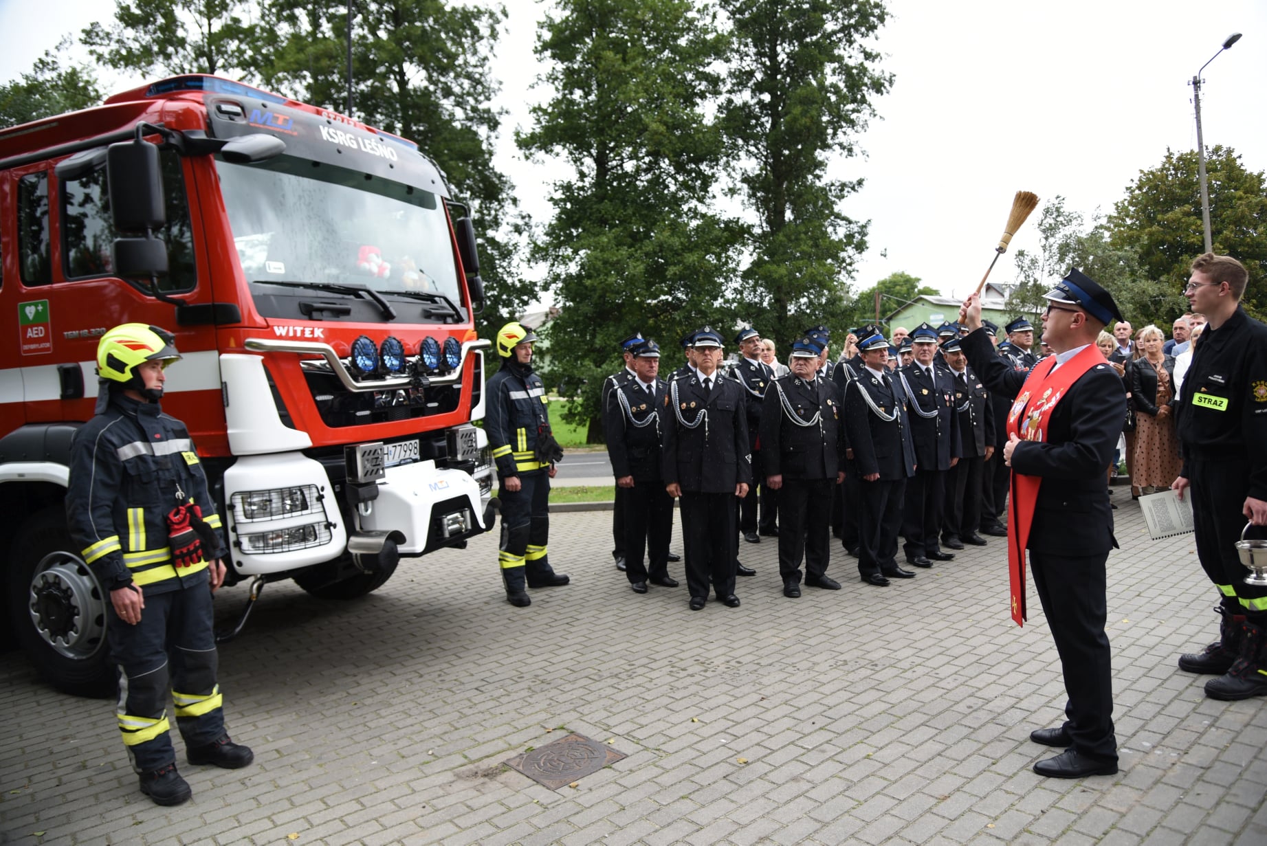 Następnie dokonano uroczystego przekazania kluczyków do samochodu strażackiego.