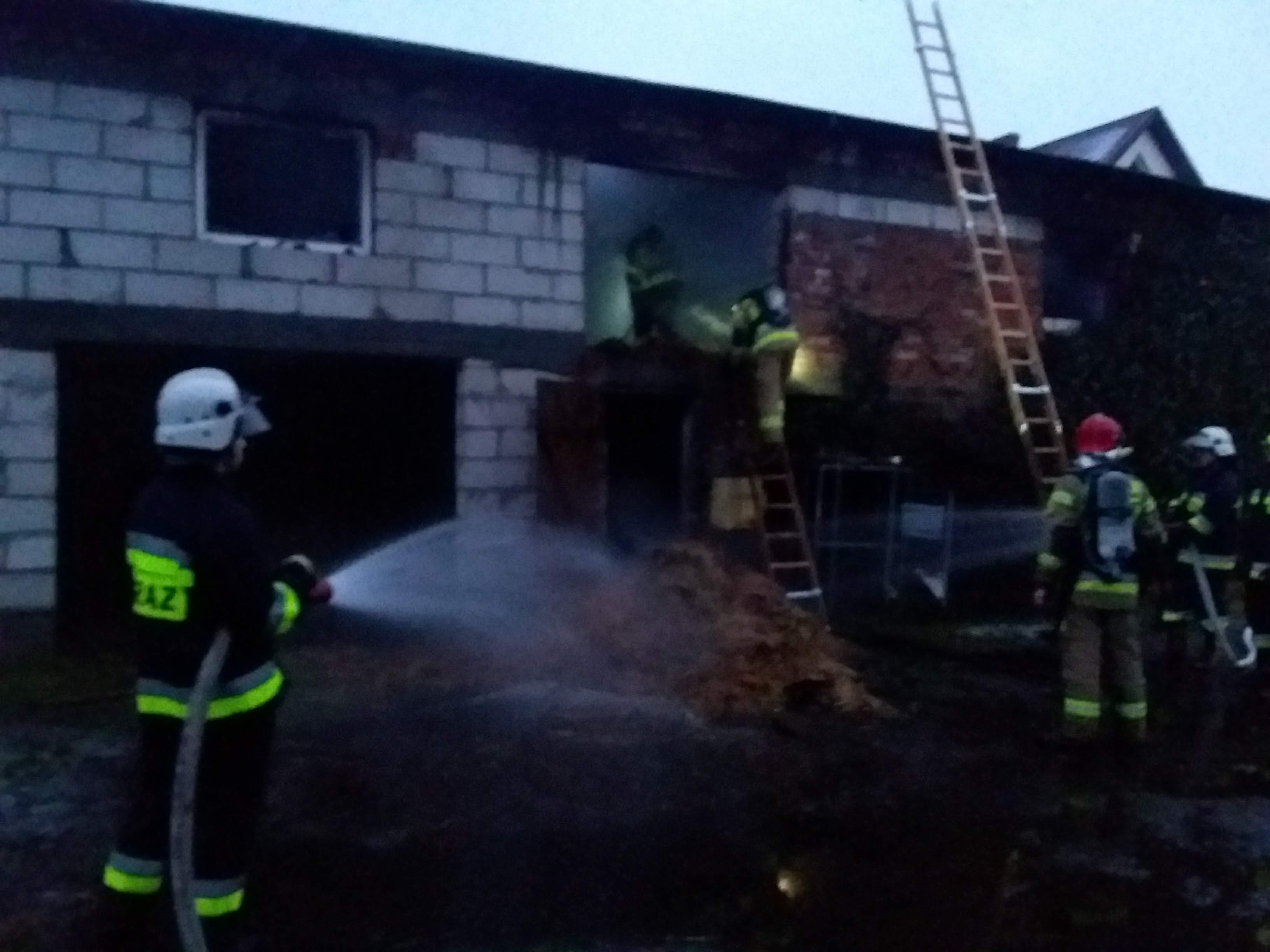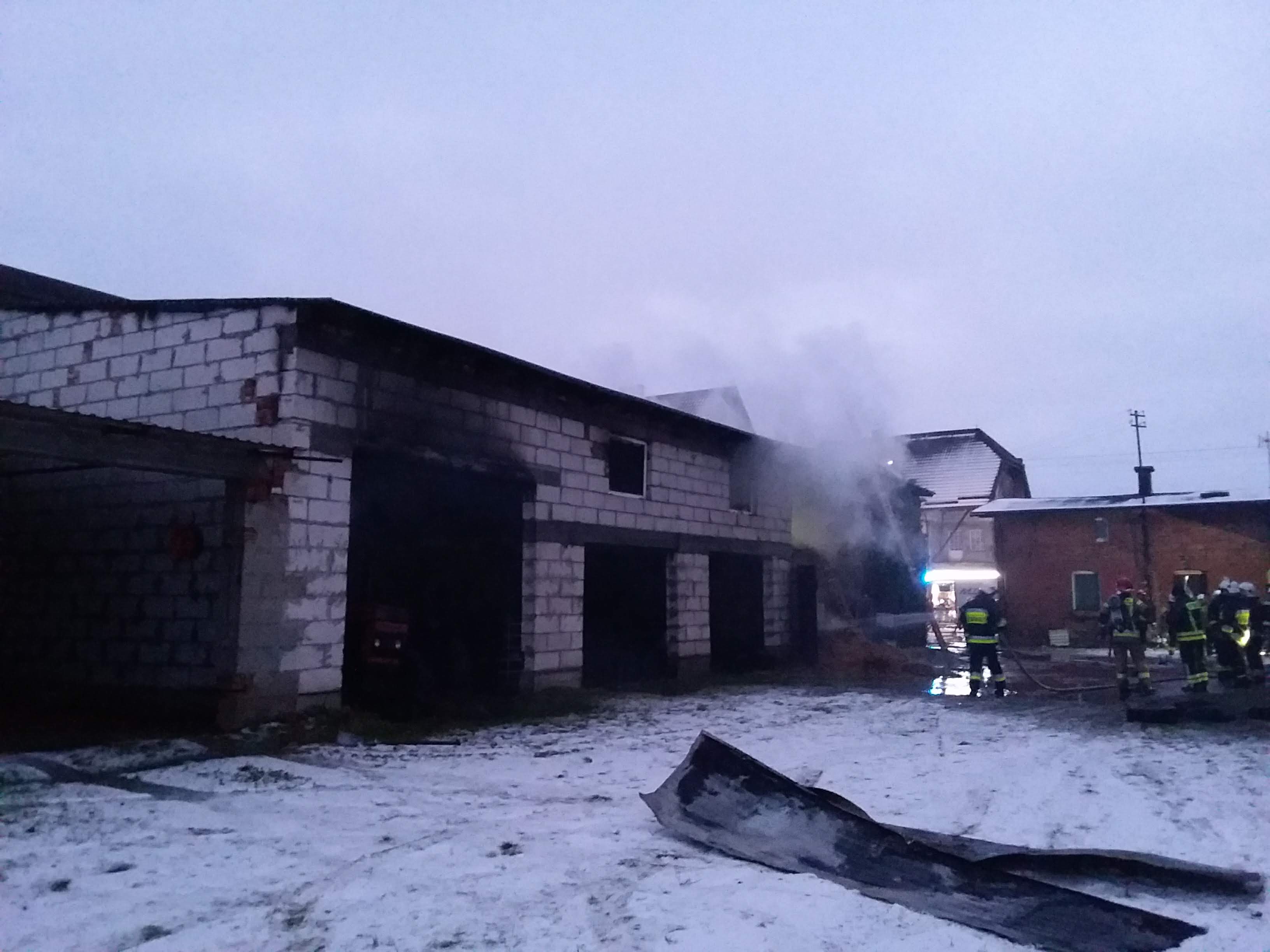 Po dojeździe pierwszych zastępów stwierdzono rozwinięty pożar budynku gospodarczego. Zagrożony był budynek na sąsiedniej działce, w którym znajdowało się bydło a na dachu zainstalowana była instalacja fotowoltaiczna.
