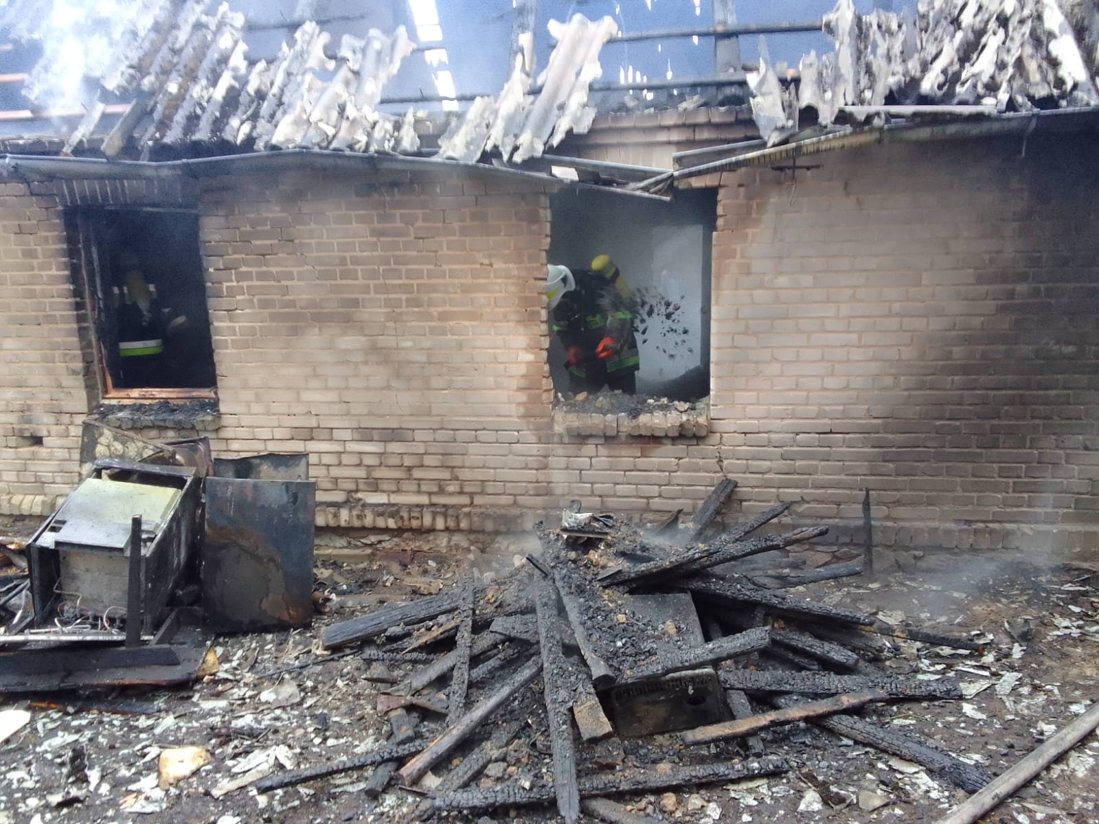 Działania zastępów Straży Pożarnej polegały zabezpieczeniu miejsca zdarzenia, podaniu trzech prądów gaśniczych w natarciu na palący się budynek, rozbiórce elementów konstrukcyjnych celem eliminacji zarzewi ognia oraz wynoszeniu i przelewaniu nadpalonego wyposażenia. W trakcie działań w pomieszczeniu kuchennym odnaleziono butlę z gazem propan – butan, którą wyniesiono na zewnątrz i intensywnie schładzano. Po częściowym przewietrzeniu pomieszczeń w trakcie przeszukania ratownicy odnaleźli zwęglone ludzkie ciało. Działania trwały około sześć godzin.