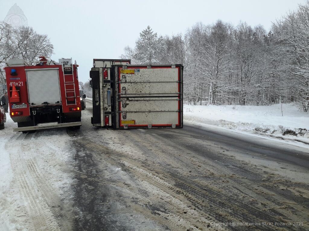 Po przybyciu na miejsce zdarzenia zastępów z Jednostki Ratowniczo Gaśniczej w Chojnicach stwierdzono że, doszło do zderzenia zespołu pojazdów (samochód ciężarowy z przyczepą) z samochodem osobowym. W wyniku zderzenia przyczepa samochodu ciężarowego przewróciła się blokując drogę w obu kierunkach. Na czas działań ratowniczych Policja wyznaczyła objazdy. W pierwszym etapie działania zastępów polegały na zabezpieczeniu miejsca akcji oraz pojazdów, udzieleniu Kwalifikowanej Pierwszej Pomocy osobom biorących udział w zdarzeniu. Drugim etapem działań było postawienie na koła oraz odholowanie przyczepy, a następnie udrożnienie jezdni. Zastępy wróciły do bazy po około trzech godzinach. Na czas działań rejon miasta Chojnice zabezpieczały zastępy Ochotniczej Straży Pożarnej z Charzyków i Chojnic.