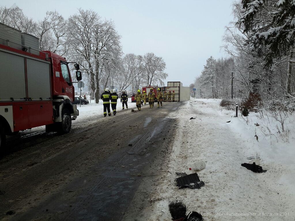 Zbeniny, gm. Chojnice (DW235) - zderzenie samochodu ciężarowego z osobowym