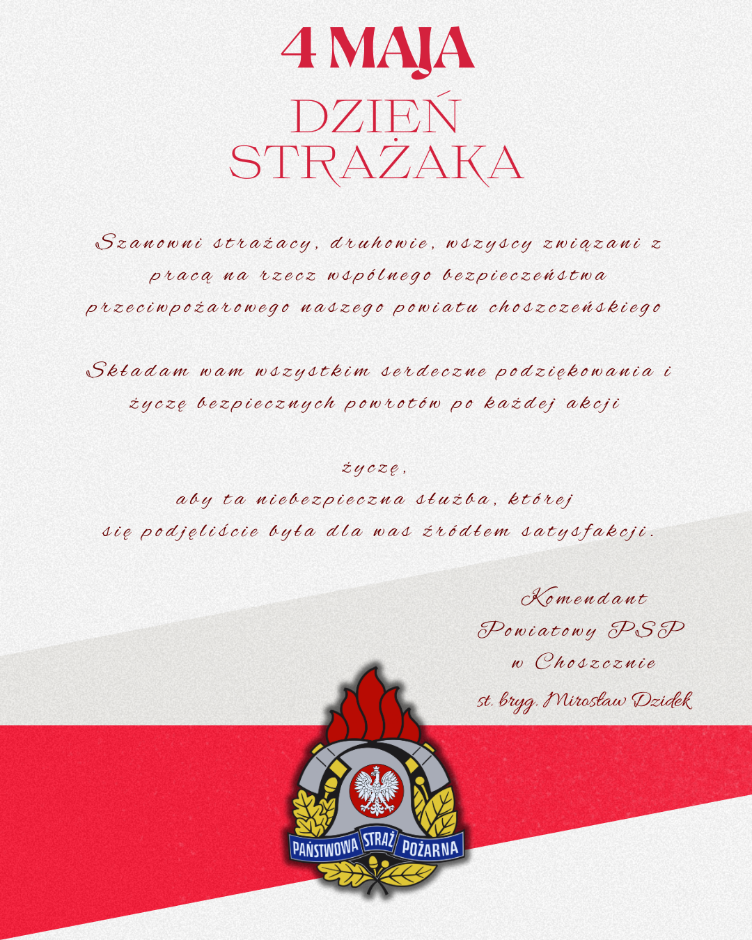 Szanowni strażacy, druhowie, wszyscy związani z pracą na rzecz wspólnego bezpieczeństwa przeciwpożarowego naszego powiatu choszczeńskiego.