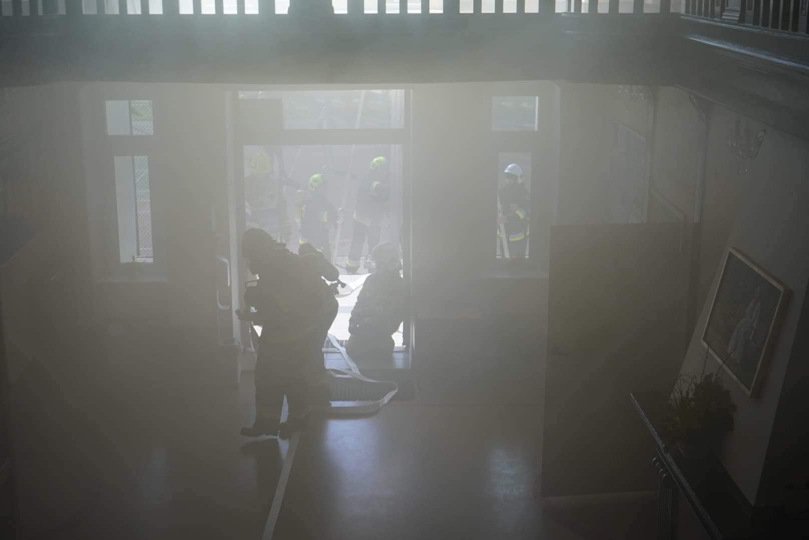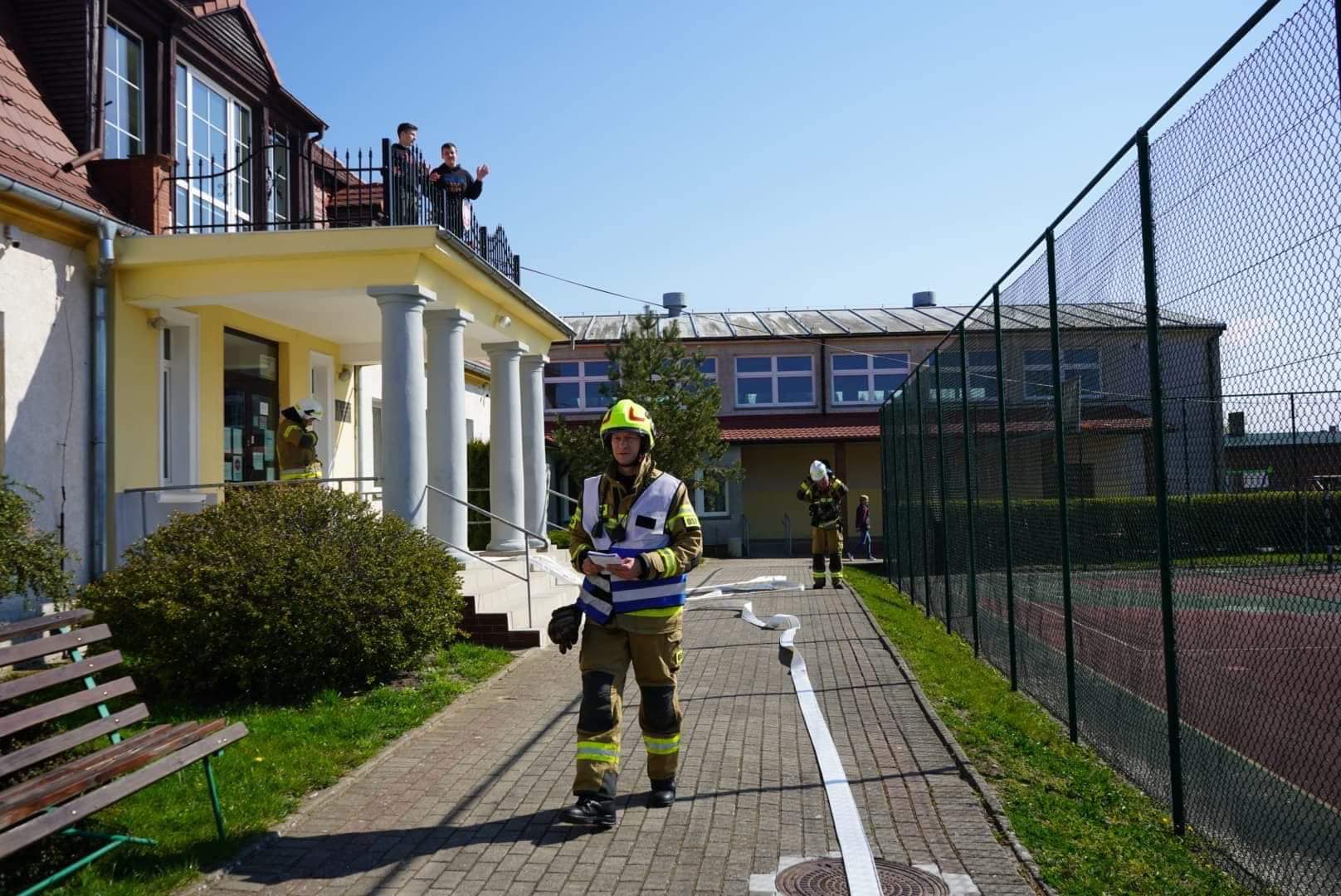 Według założeń doszło do pożaru pomieszczenia w budynku szkoły. Dziewięciu uczniów nie zdołało ewakuować się samodzielnie ze strefy niebezpiecznej.