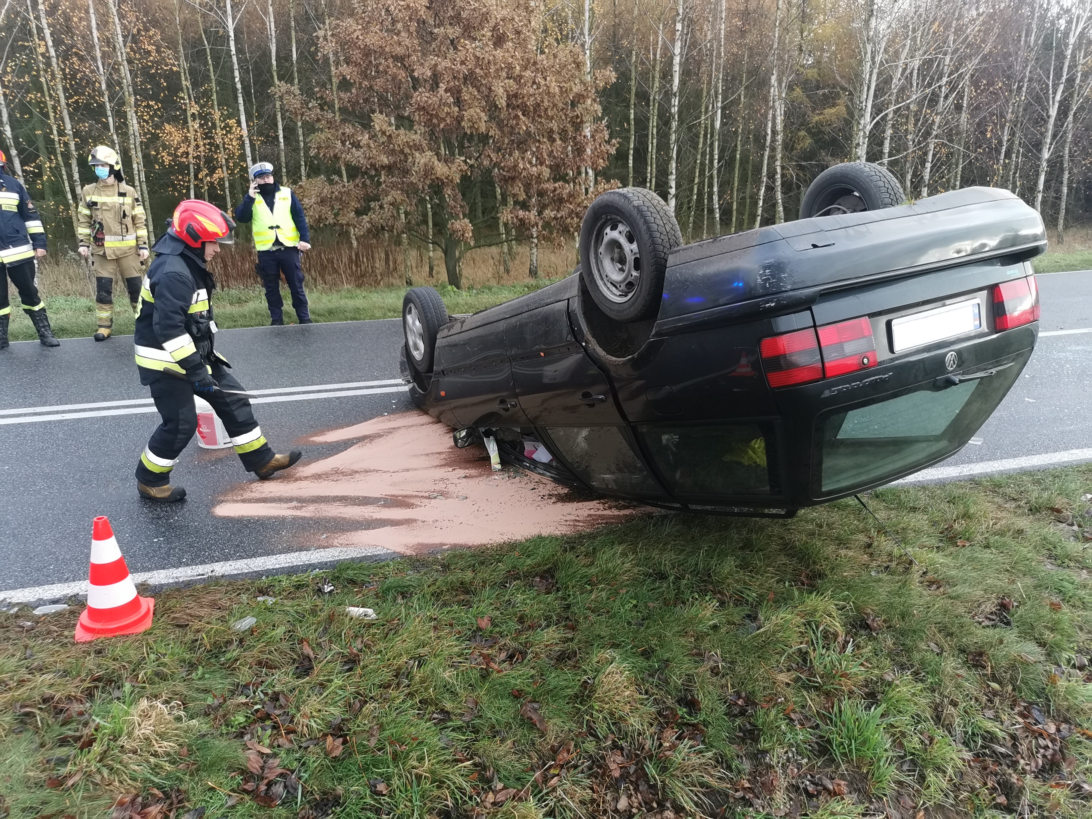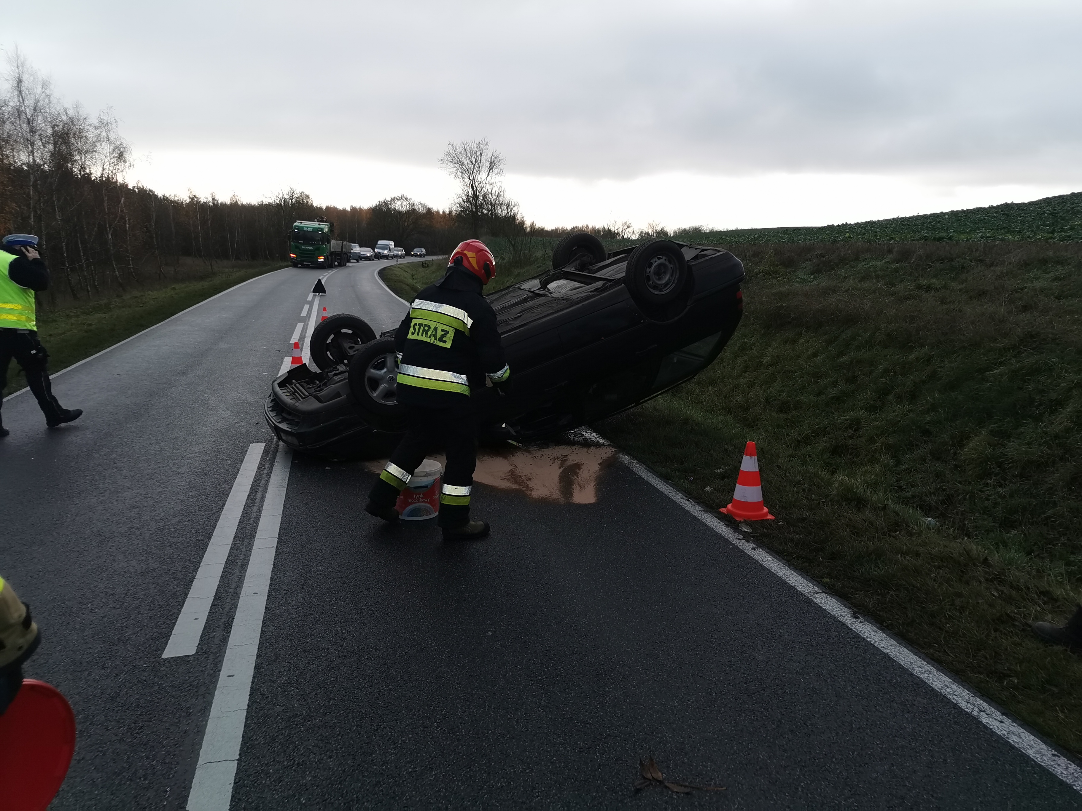 Dachowanie na DW 151 w okolicy Pełczyc