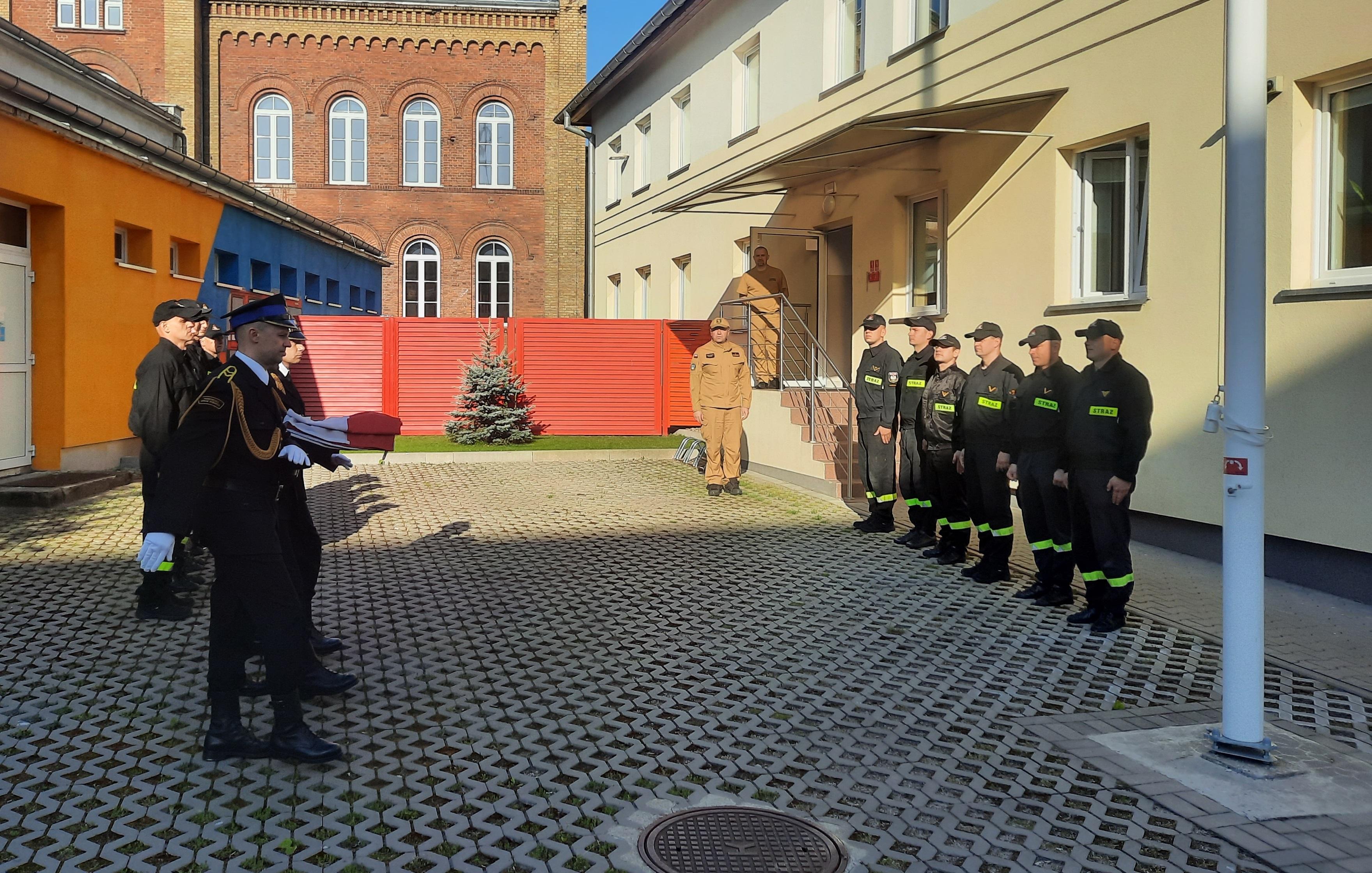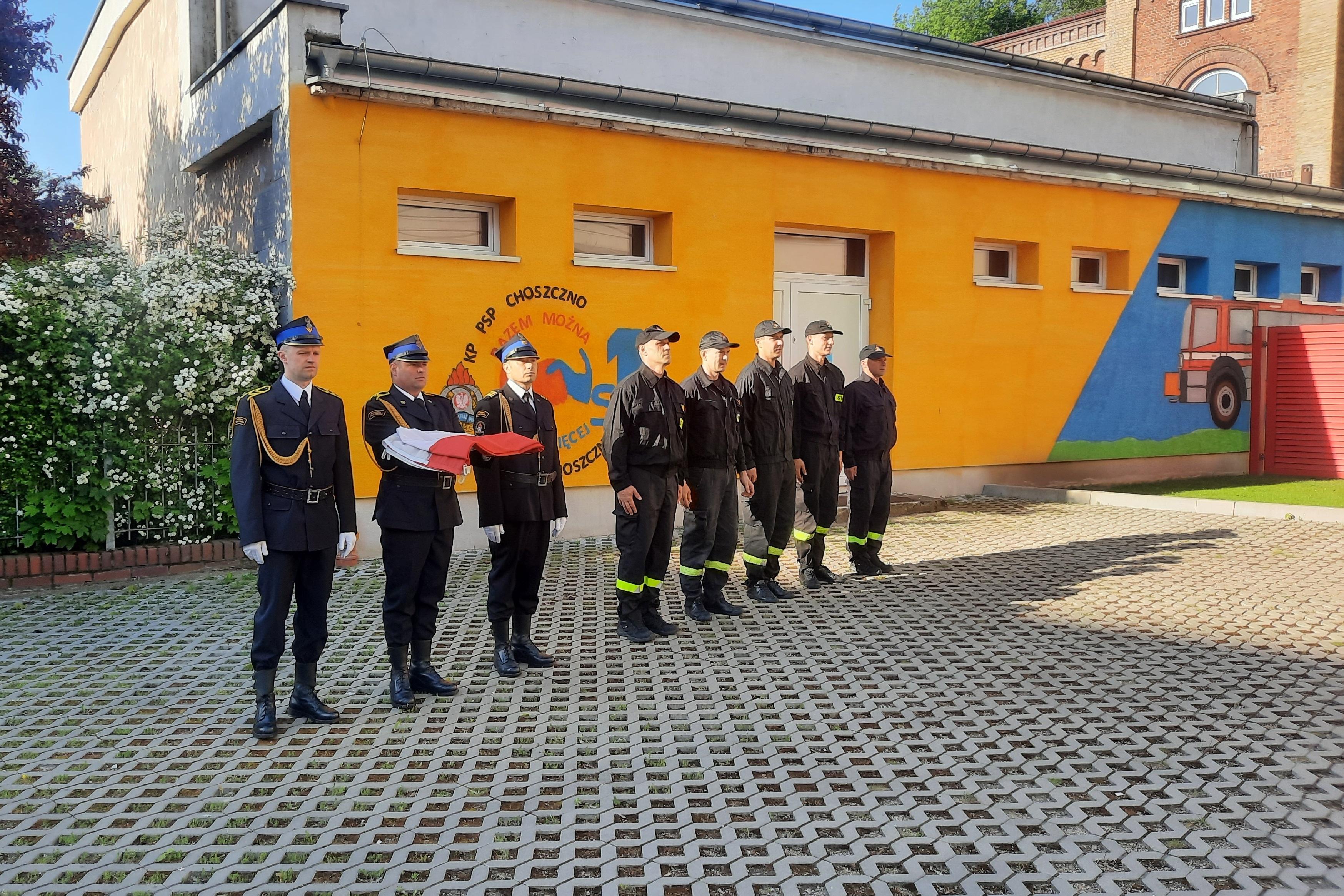 02 maja 2024 roku z okazji święta Dnia Flagi Rzeczpospolitej Polskiej choszczeńscy strażacy, podczas zmiany służby uroczyście podnieśli flagę Polski na maszt.