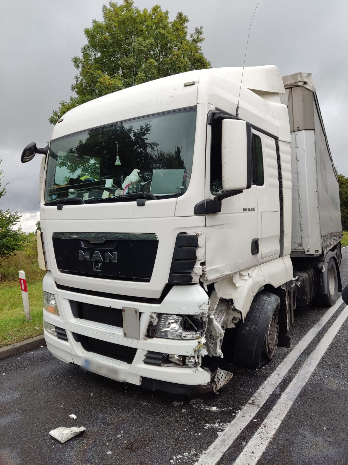 Kolizja ciężarówki i pojazdu wojskowego na DK-10