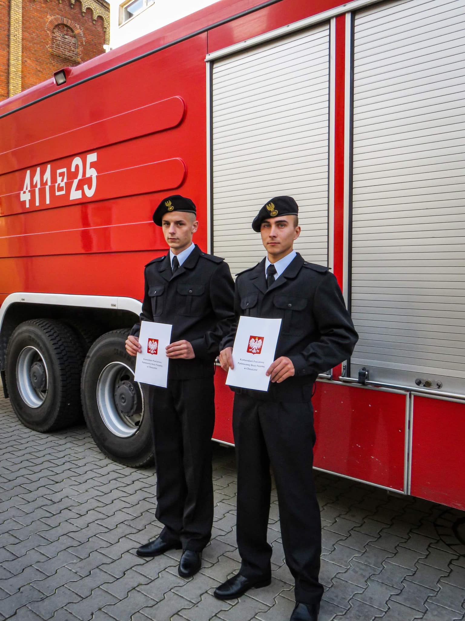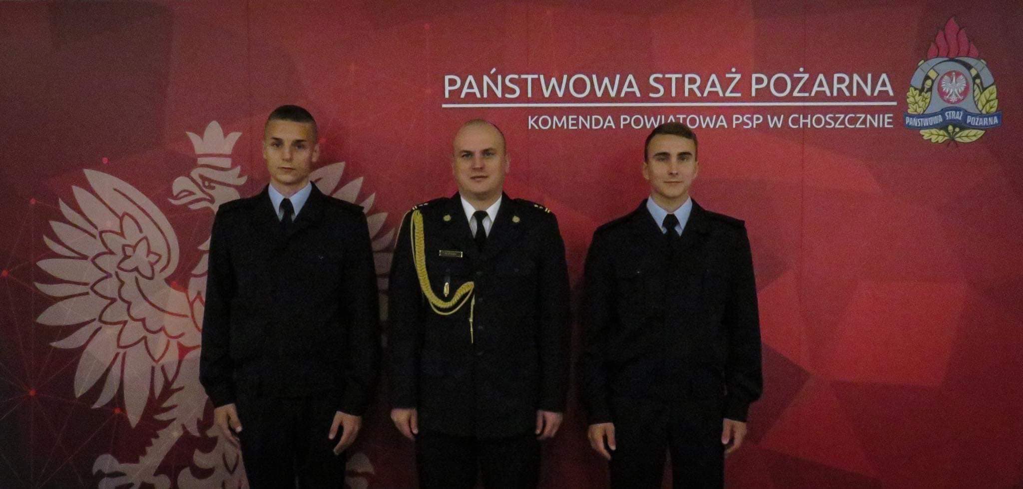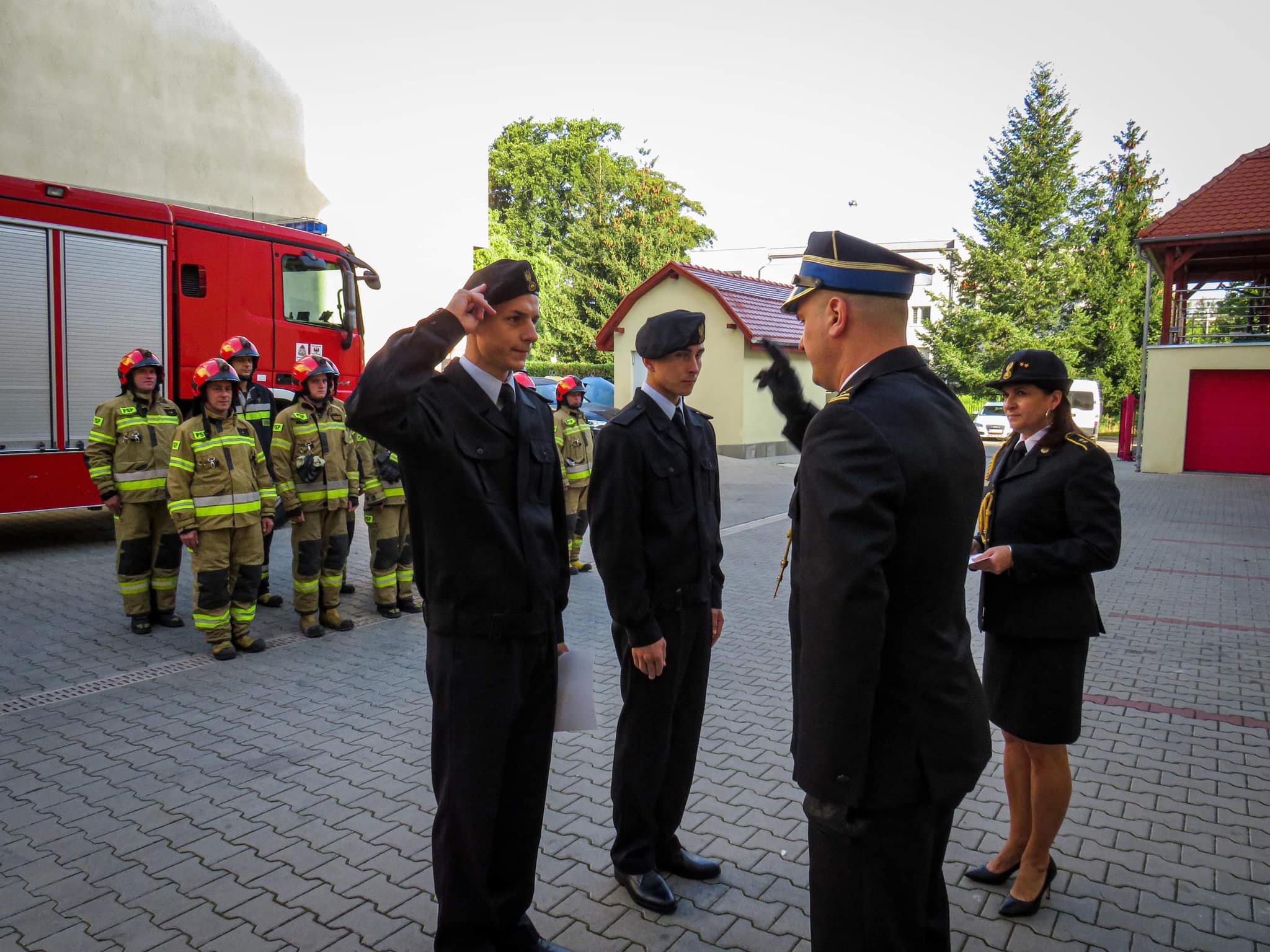 W środę 25 sierpnia 2021 roku, na placu Komendy Powiatowej Państwowej Straży Pożarnej w Choszcznie, odbyło się uroczyste ślubowanie dwóch nowo przyjętych funkcjonariuszy.
