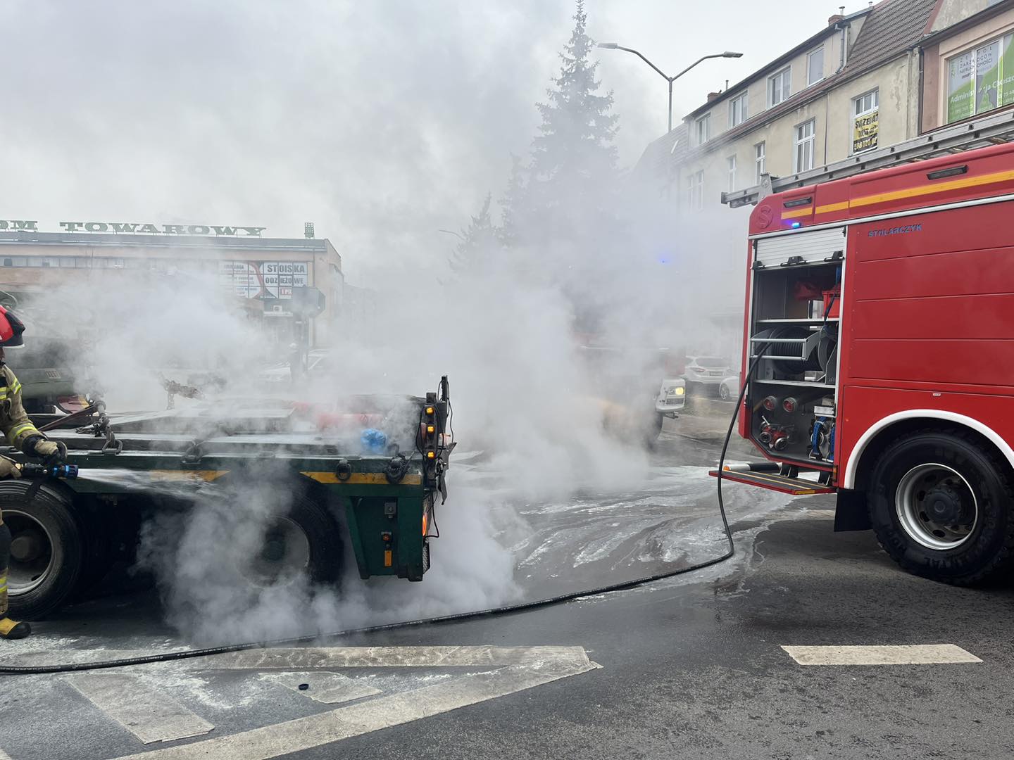 Pierwsze zdarzenie miało miejsce o godz. 12:51 gdzie dzięki szybkiej reakcji świadka i akcji strażaków udało się zatrzymać pożar naczepy samochodu ciężarowego na jego bardzo wczesnym etapie – spaleniu uległa tylko jedna opona w tylnym kole – pożar ugaszono podając jeden prąd wody w natarciu. Całość miała miejsce na skrzyżowaniu ulicy Wolności i Bolesława Chrobrego.