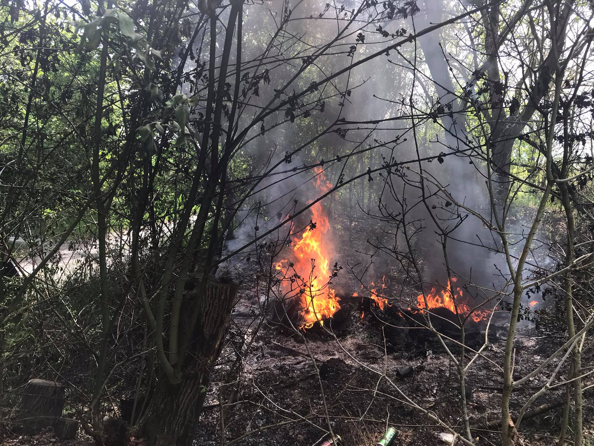 Pożar śmieci przy drodze 151