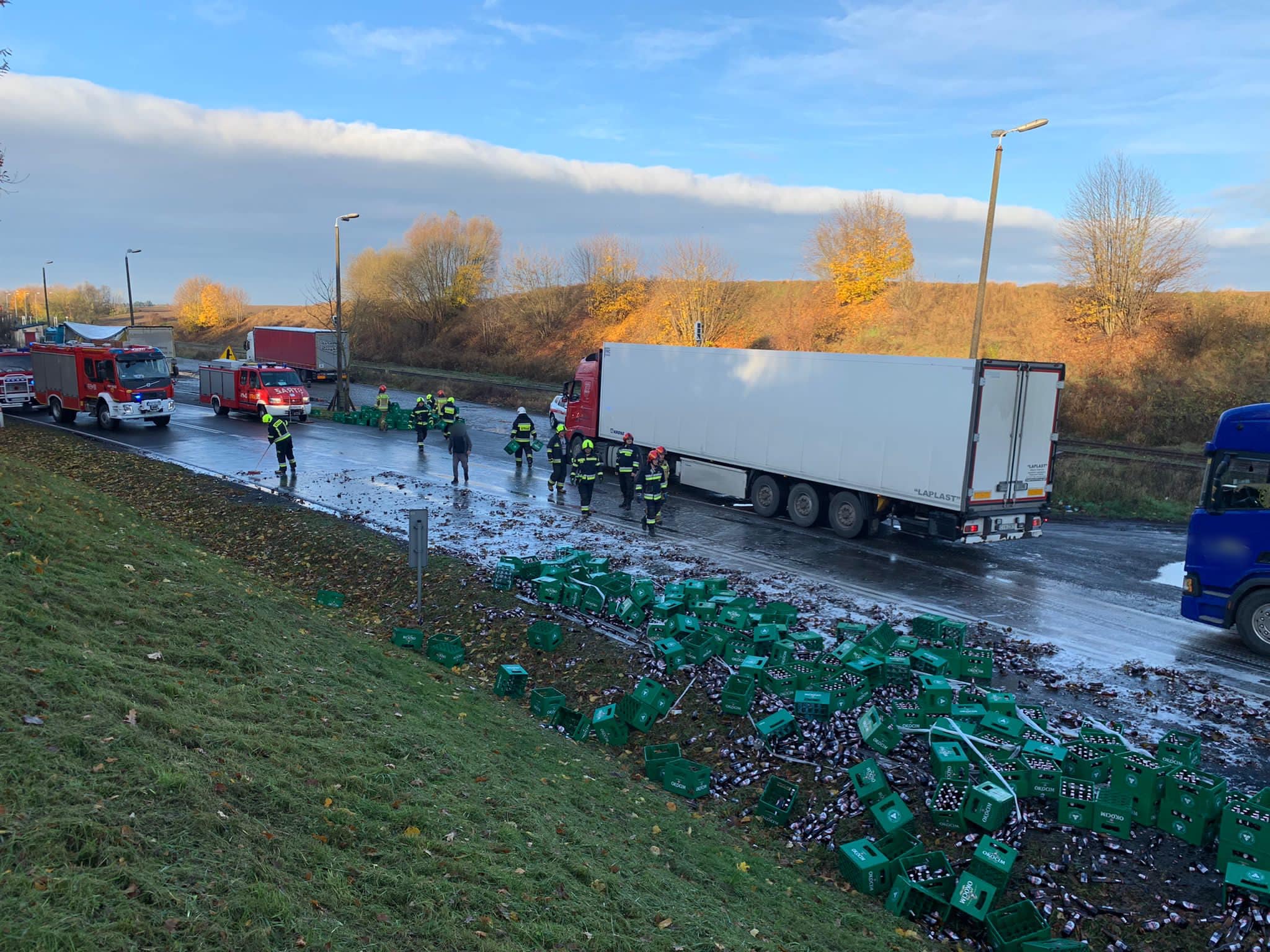 Rozsypany ładunek piwa na DK-10 w Reczu