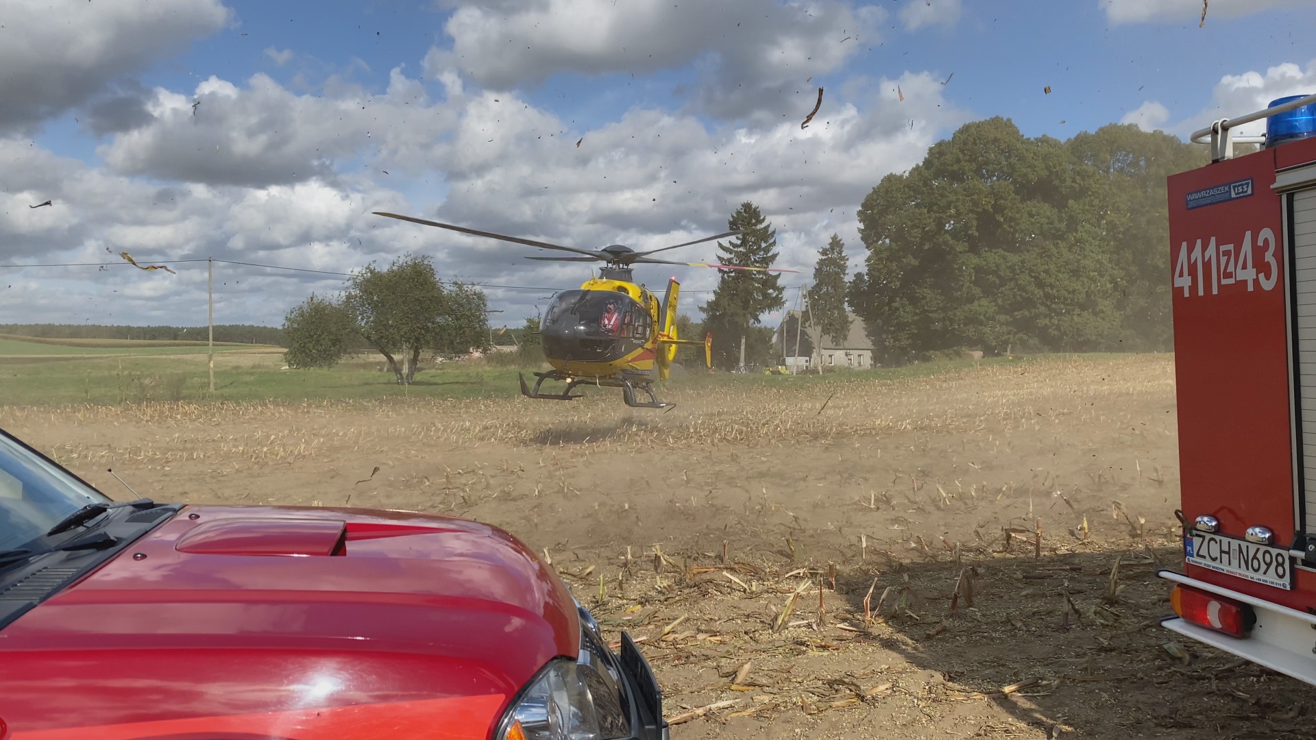 30 września 2021 roku, około godziny 13:05 do Stanowiska Kierowania Komendanta Powiatowego PSP w Choszcznie, wpłynęło zgłoszenie o zdarzeniu w miejscowości Czernice (gm. Choszczno). Podczas prac polowych poszkodowany został mężczyzna, którego nogi zostały wciągnięte przez maszynę do zbioru kukurydzy. W wyniku zdarzenia maszyna amputowała mężczyźnie lewą nogę. Poszkodowany został zabrany do szpitala przez śmigłowiec Lotniczego Pogotowia Ratunkowego. Na miejscu działały 4 zastępy JRG Choszczno, Zespół Ratownictwa Medycznego oraz Policja.