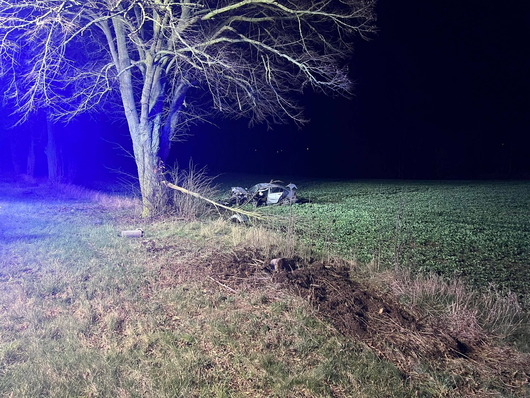 Do zdarzenia zadysponowano dwa zastępy z JRG Choszczno. Po dojeździe na miejsce, potwierdzono informację o dwóch osobach poszkodowanych. Kierująca pojazdem kobieta była uwięziona w pojeździe, a 16-letni pasażer opuścił pojazd o własnych siłach. Trzecia osoba podróżująca samochodem nie odniosła obrażeń. Po przybyciu na miejsce zdarzenia Zespołu Ratownictwa Medycznego, uwolniona kobieta wraz z poszkodowanym pasażerem zostali przekazani ratownikom medycznym, którzy podjęli decyzje o przewiezieniu ich do szpitala. Przyczyny wypadku ustala policja.