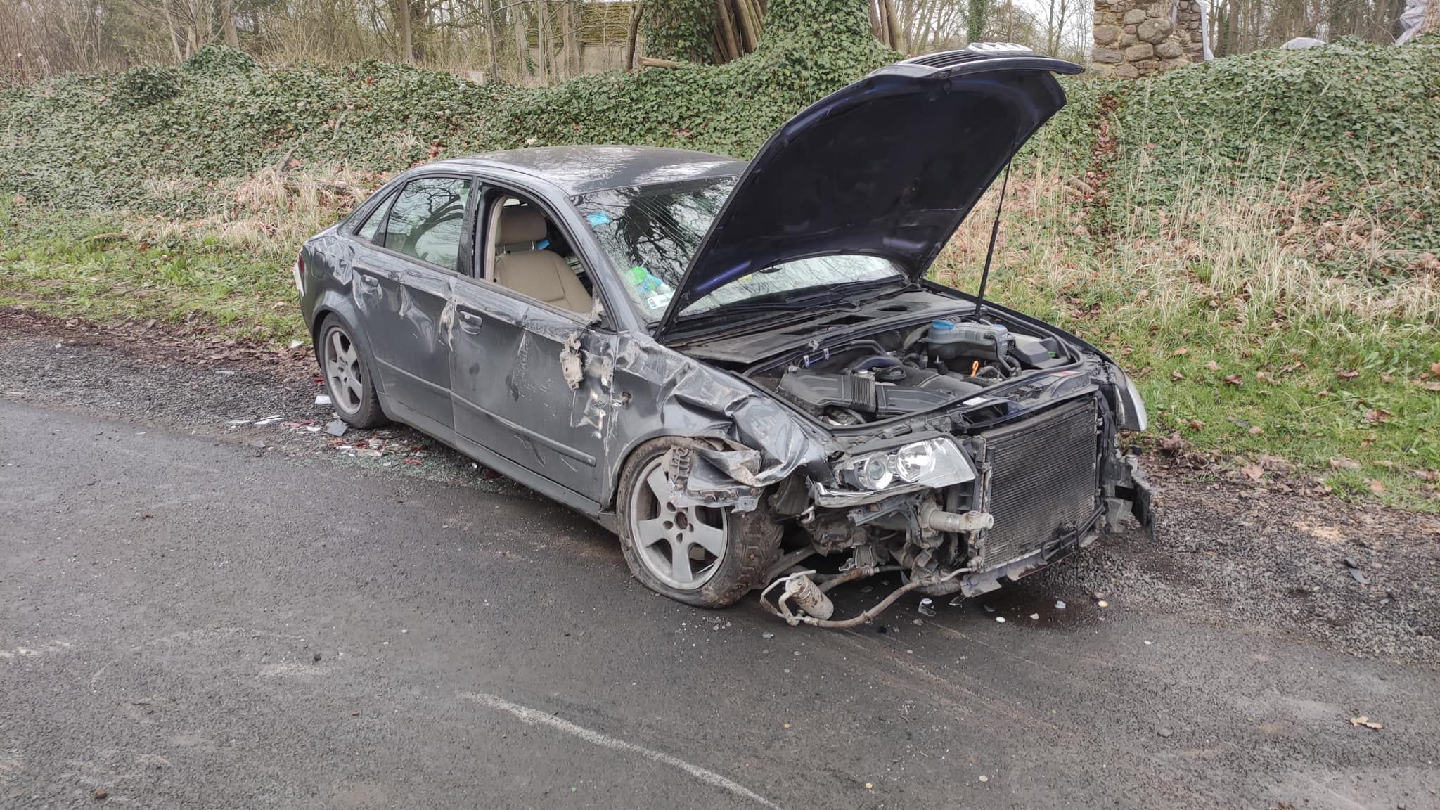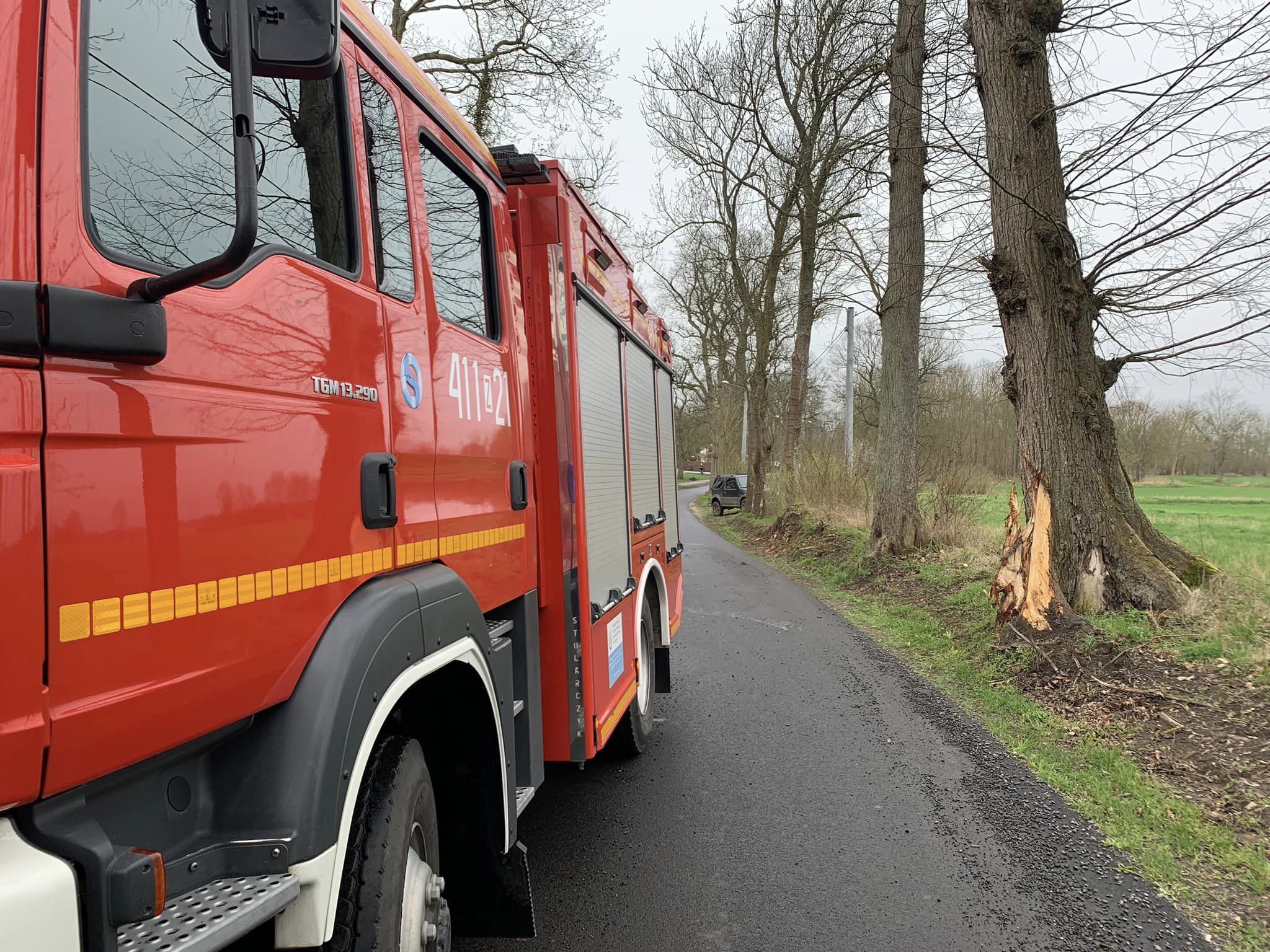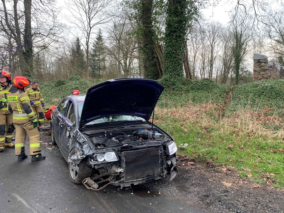 Samochodem marki Audi A4, który uderzył w przydrożne drzewo, podróżował 21-letni kierujący. Poszkodowany po przebadaniu przez ratowników Zespołu Ratownictwa Medycznego został zabrany do szpitala. Przyczyny wypadku ustala policja.