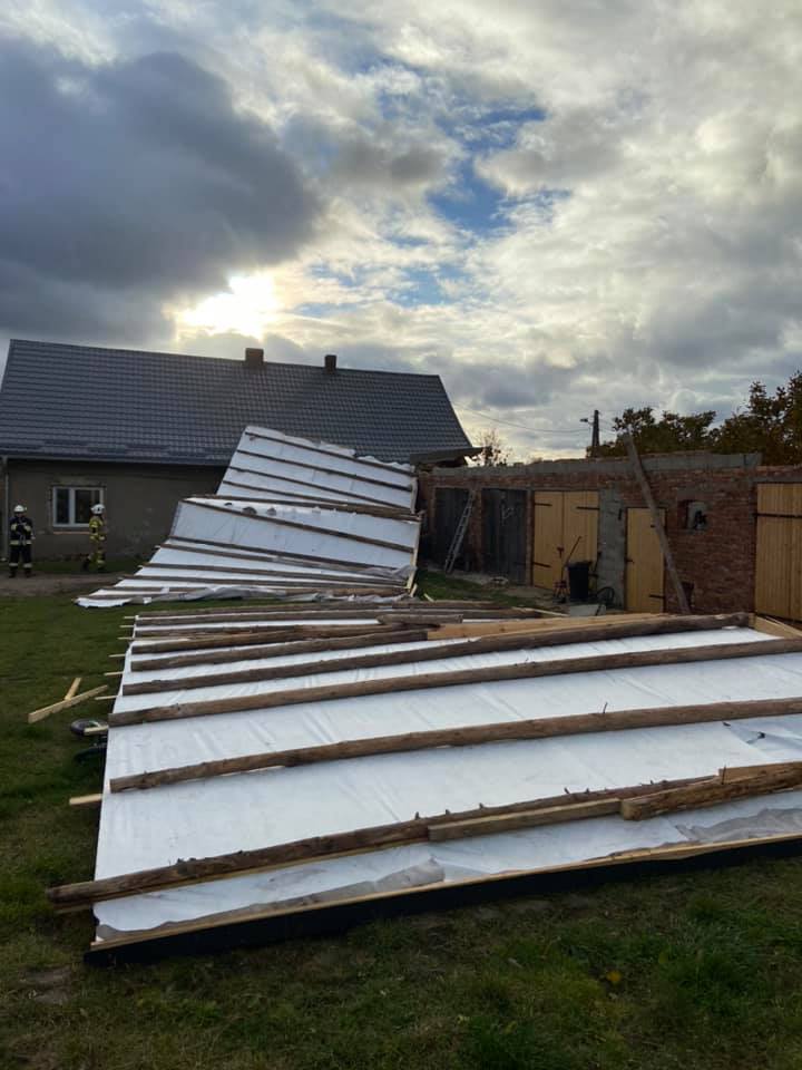 Uszkodzone poszycia dachów budynków mieszkalnych strażacy zabezpieczali w miejscowościach Brzeziny, Recz i Mielęcin, a całkowicie zerwane dachy budynków gospodarczych w Jagowie, Klasztornej i Sokolińcu.