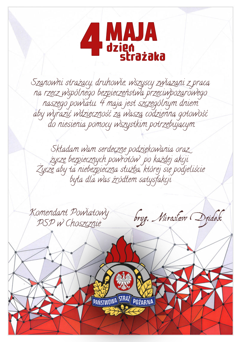 Życzenia Komendanta Powiatowego PSP w Choszcznie z okazji Międzynarodowego Dnia Strażaka