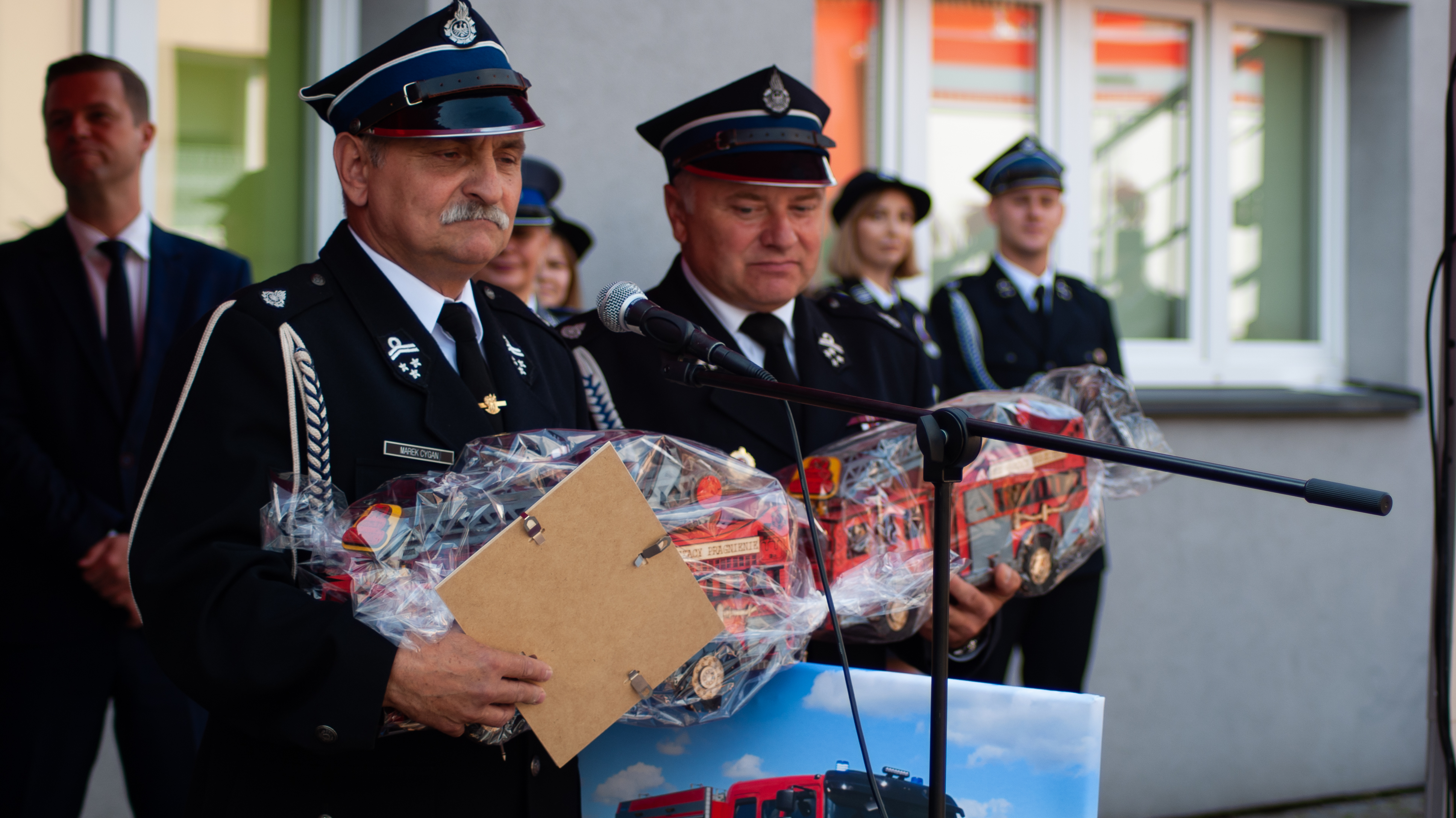 Komendant Powiatowy Państwowej Straży Pożarnej w Chrzanowie mł. bryg. Andrzej Dybał odczytał list przekazany przez st. bryg. Piotra Filipka Małopolskiego Komendanta Wojewódzkiego Państwowej Straży Pożarnej.