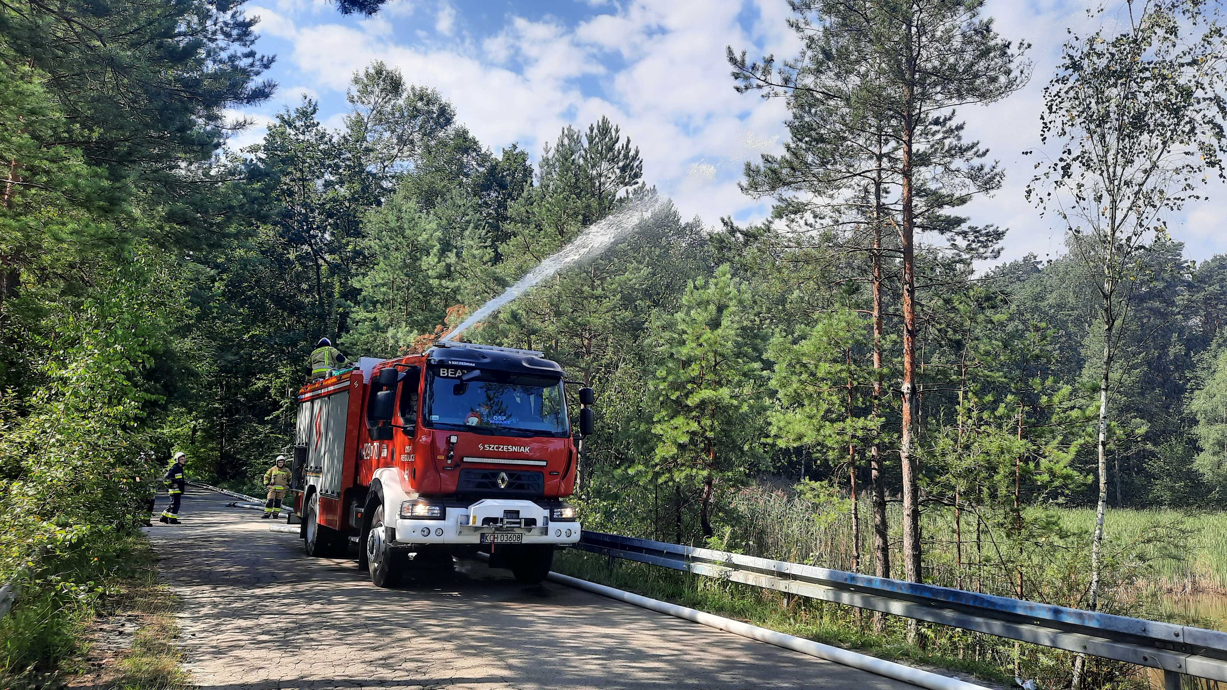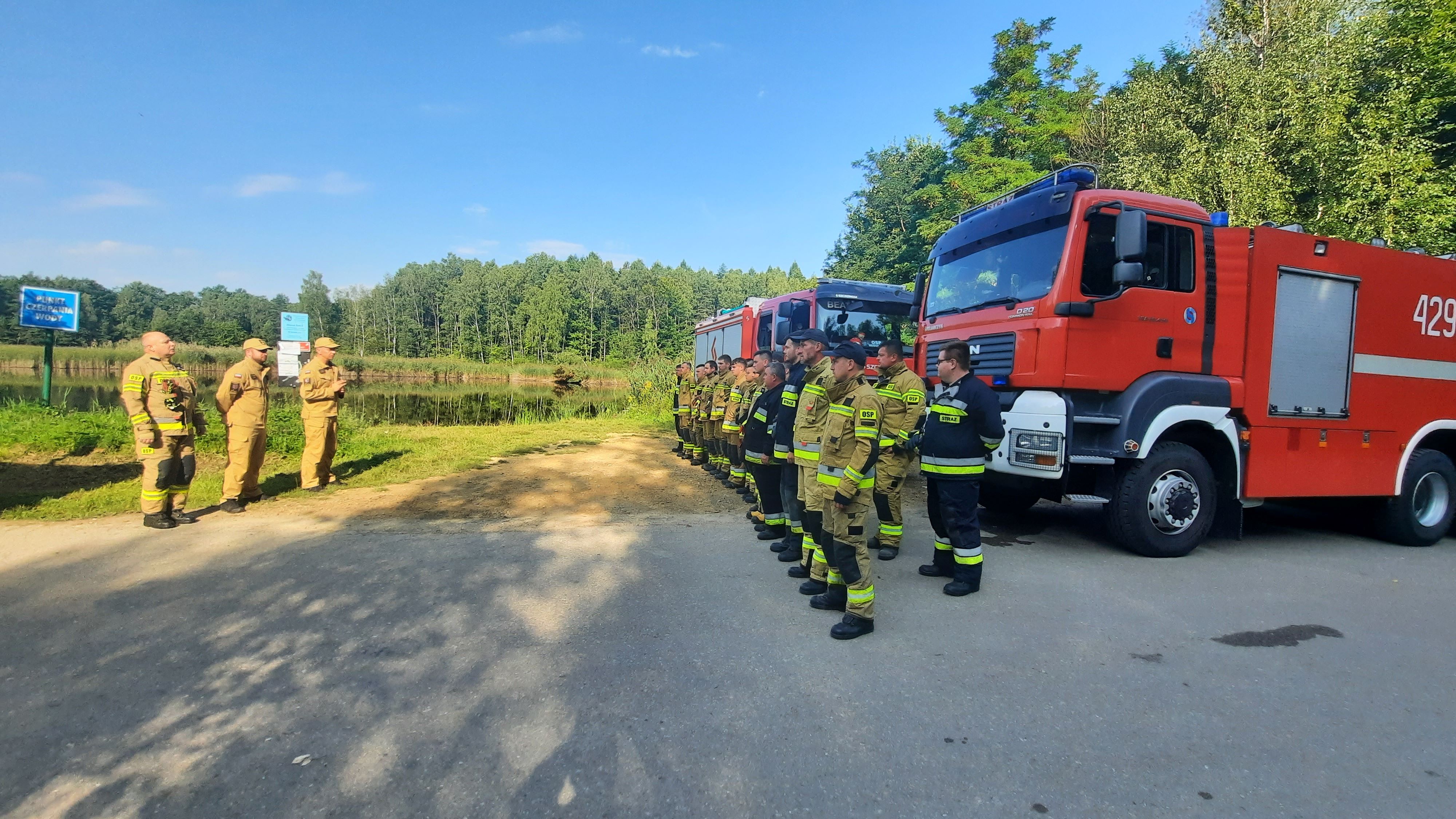 28.08.2023 r. od godz. 9.00 w miejscowości Żarki w rejonie stawów zapadliskowych i Ziajek strażacy OSP ćwiczyli przesyłanie wody na duże odległości z wykorzystaniem punktu czerpania wody zlokalizowanego na otwartym zbiorniku wodnym. W ćwiczeniach wzięli udział druhowie z jednostek OSP wyznaczonych do plutonu zaopatrzenia wodnego: OSP Płaza, OSP Zagórze, OSP Regulice, OSP Psary i OSP Moczydło oraz dowództwo plutonu st. asp. Wojciech Głuch i dh Ryszard Nowakowski. Przed ćwiczeniami Zastępca Komendanta Powiatowego PSP w Chrzanowie st. bryg. Jacek Kukuła oraz Naczelnik Wydziału Planowania Operacyjnego i Przeciwdziałania Zagrożeniom mł. bryg. Piotr Bębenek omówili założenia ćwiczeń i cele do realizacji oraz przypomnieli podstawowe zasady bezpieczeństwa, poruszania się pojazdów specjalnych i prowadzenia łączności radiowej. Zadaniem ćwiczących było zbudowanie magistrali wodnej o długości minimum 1 km i uzyskanie wydatku wodnego min. 1600 l/min. W trakcie ćwiczeń strażacy zrealizowali postawione przed nimi zadania. Ćwiczenia zakończyły się o godz. 12.00.