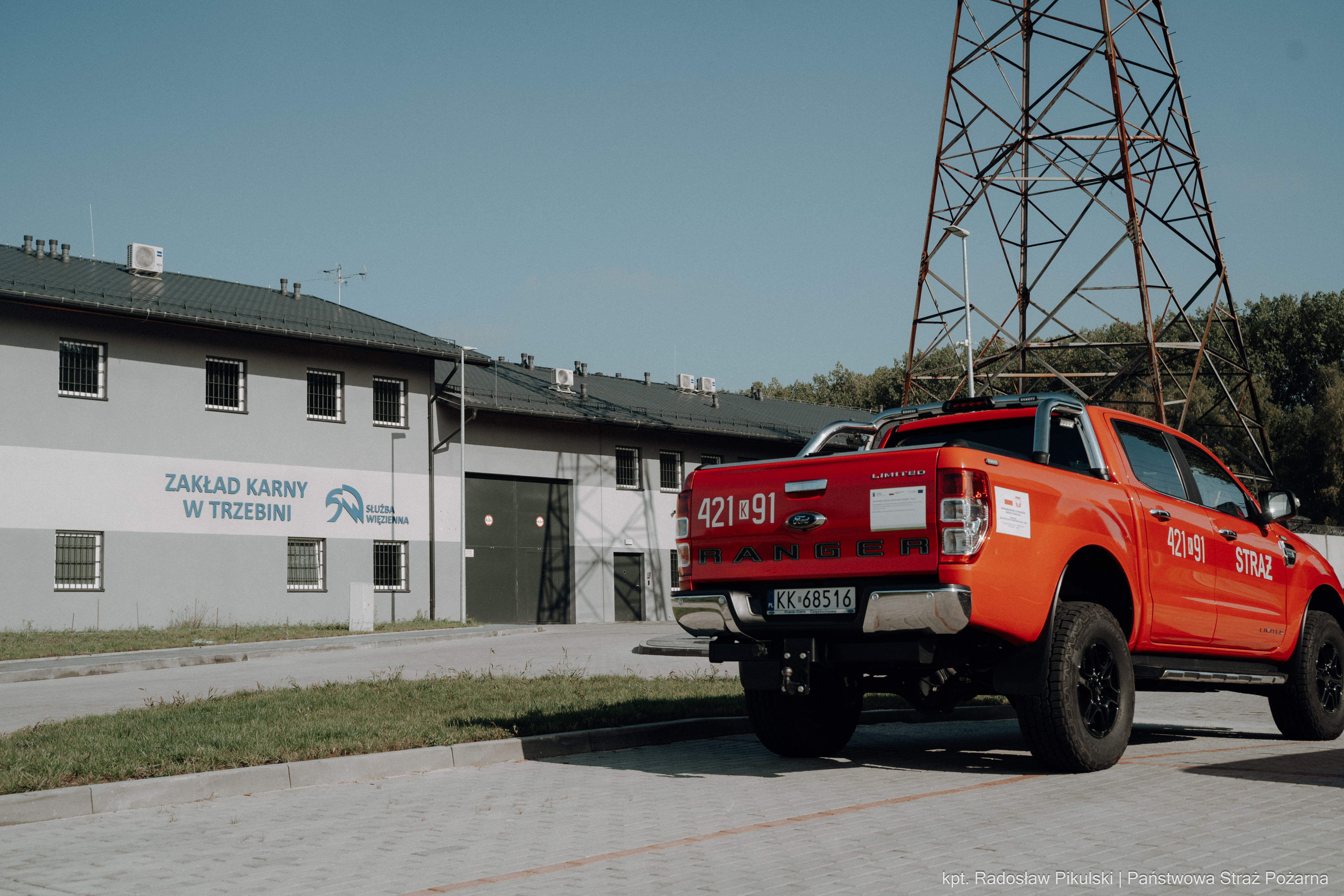 04 września 2025 r. na terenie nowego budynku Zakładu Karnego w Trzebini przeprowadzono ćwiczenia, w ramach których sprawdzono możliwości prowadzenia działań ratowniczo-gaśniczych. W nowym obiekcie znajduje się miejsce dla 300 osadzonych. Strażacy mieli możliwość zapoznać się z działaniem systemów dozoru oraz systemami ochrony przeciwpożarowej na terenie Zakładu Karnego. Sprawdzono także możliwości rozstawienia podnośnika SCHD-42 z JRG Chrzanów. W ćwiczeniach udział wzięła także Grupa Interwencyjna Służby Więziennej z Nowego Sącza, która w przypadku wystąpienia zagrożenia w jednostkach penitencjarnych podejmuje działania.