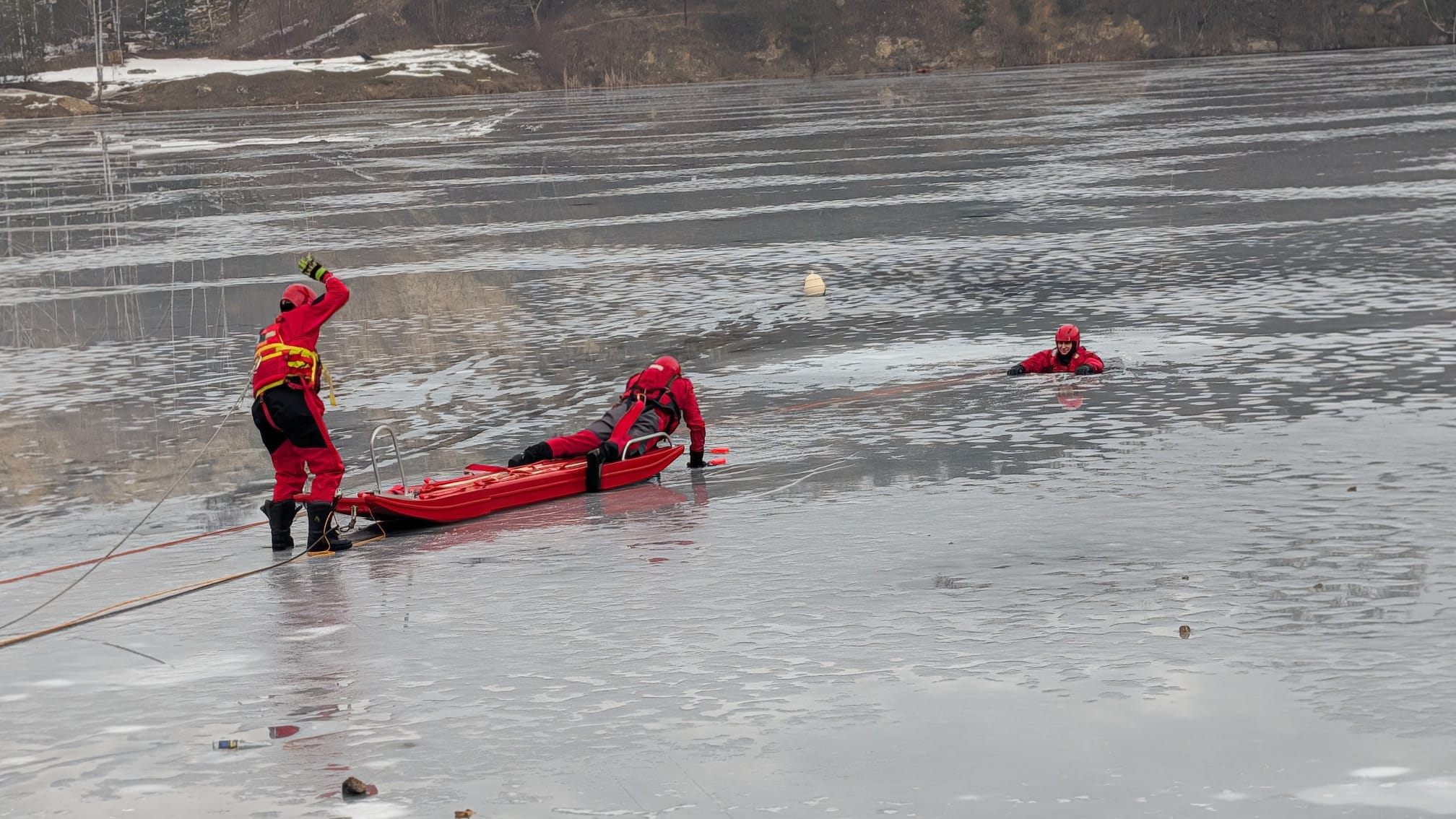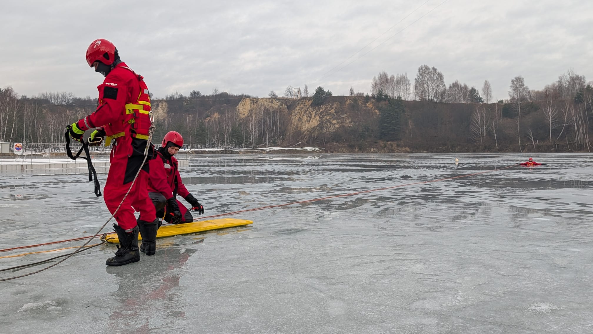 Ćwiczenia z ratownictwa lodowego strażaków JRG Chrzanów
