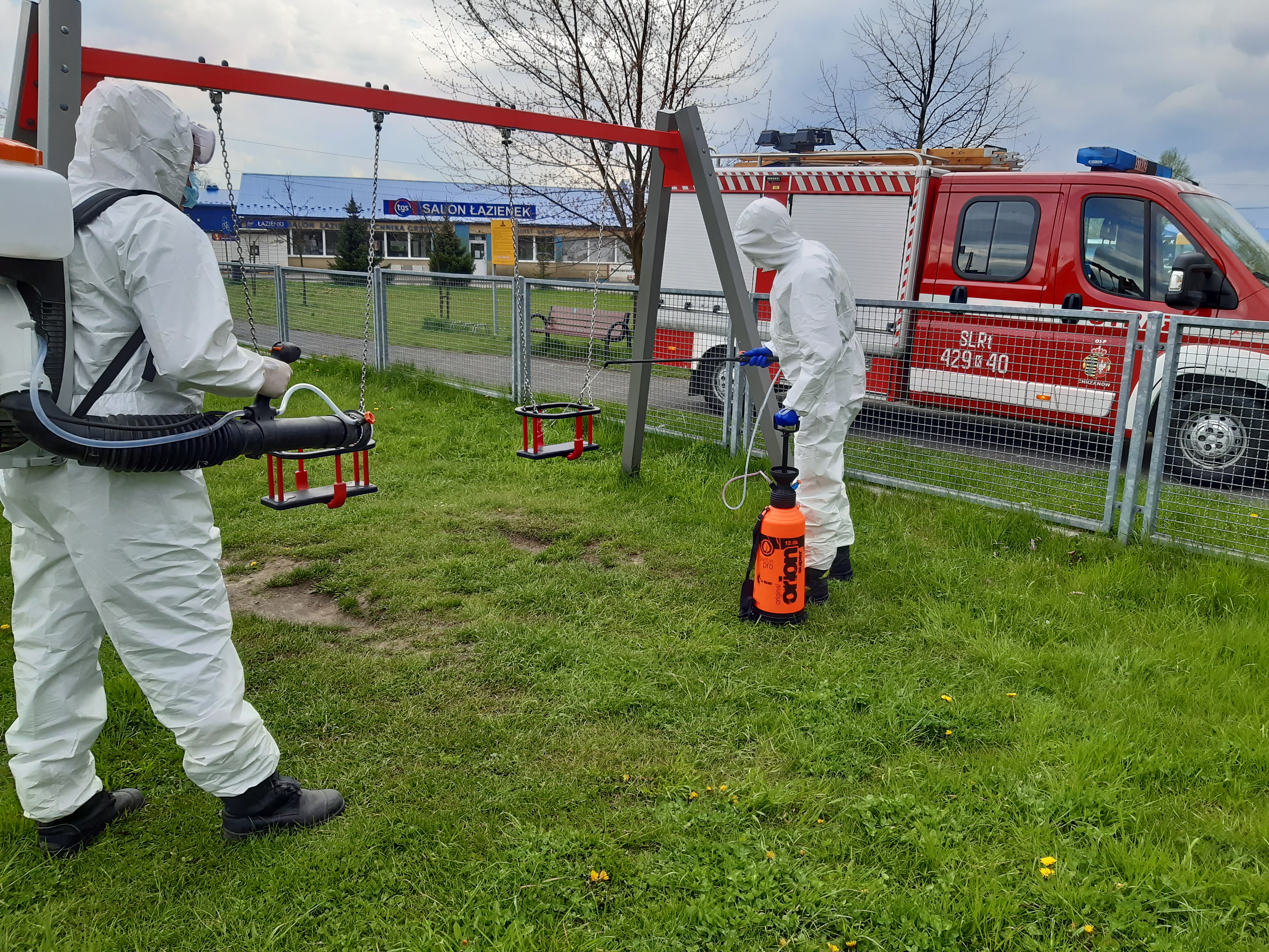 7 i 8 maja 2021 r. zastępy OSP z terenu gminy Chrzanów dezynfekowały place zabaw i siłownie plenerowe. Jest to kolejny krok przeciwdziałania COVID-19.