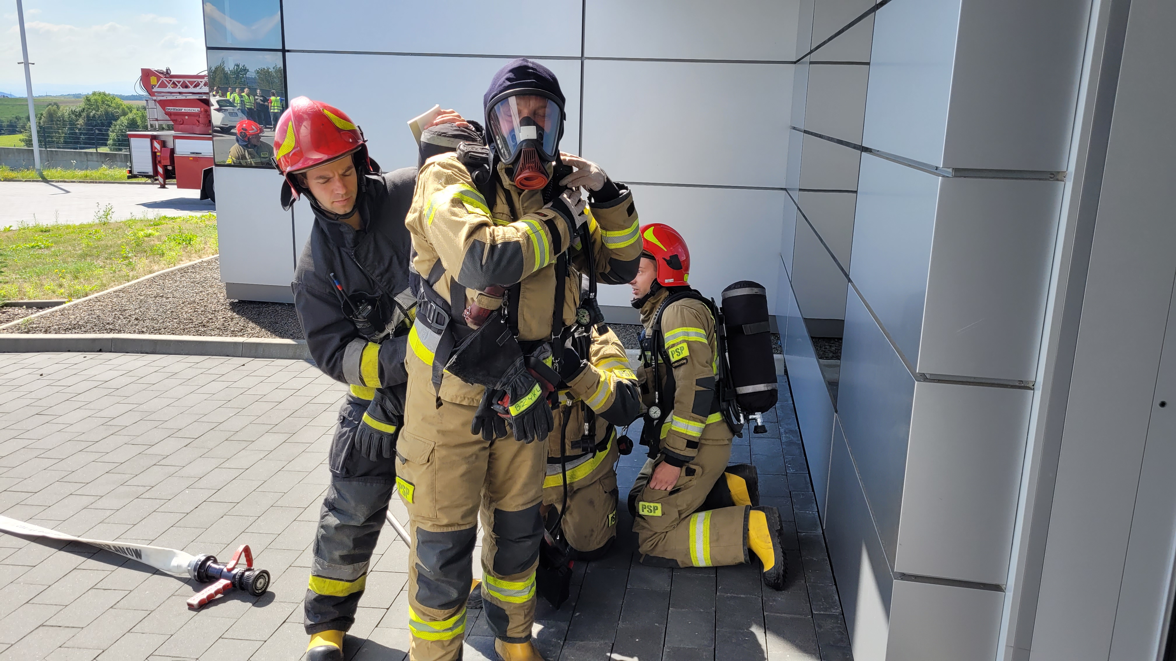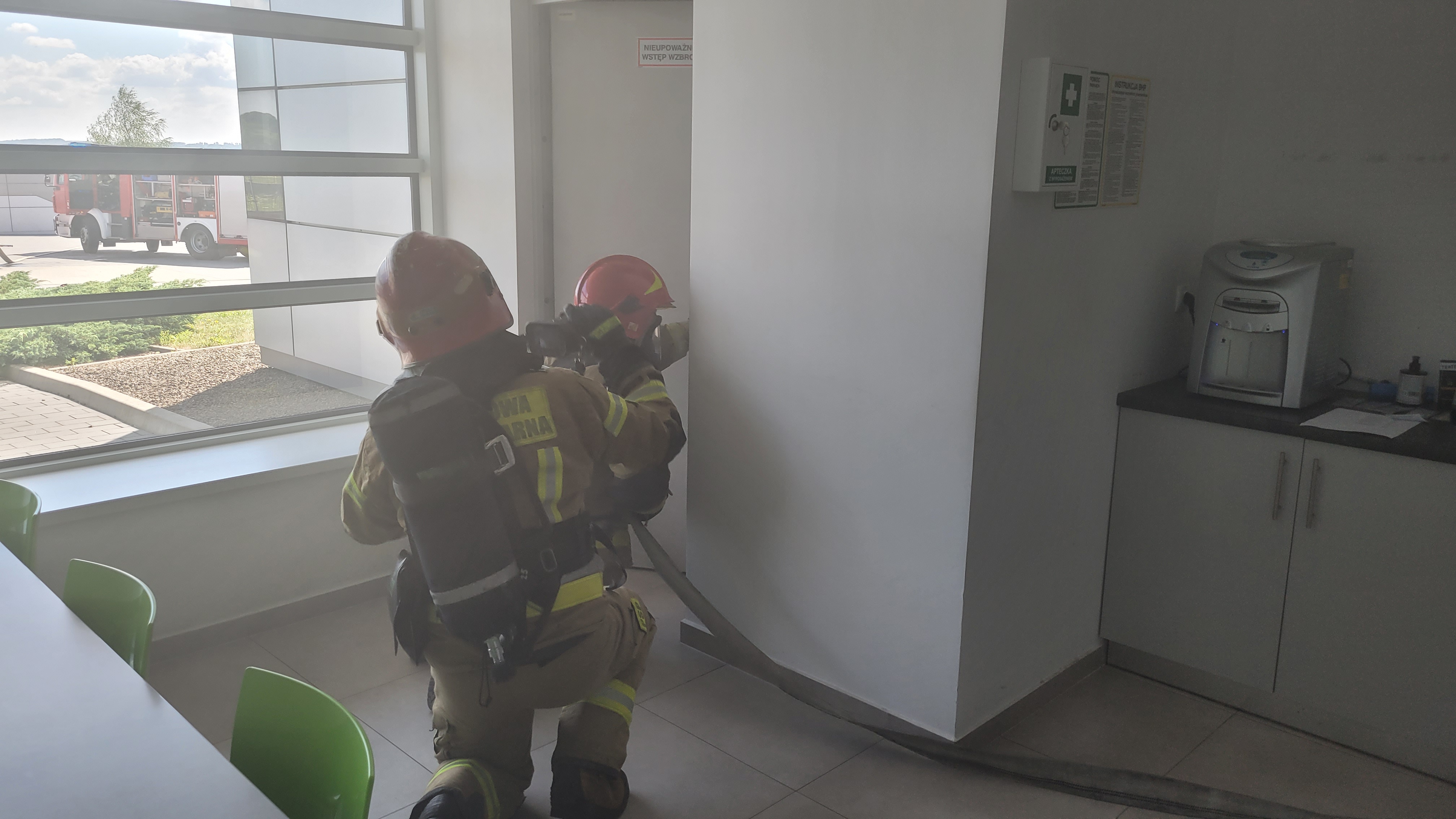 Strażacy mieli możliwość doskonalić swoje umiejętności prowadzenia działań w obiektach gdzie znajdują się serwerownie. Przećwiczono również ewakuację pracowników zakładu. W zapoznaniu brały udział wszystkie zmiany służbowe oraz OSP Grojec.