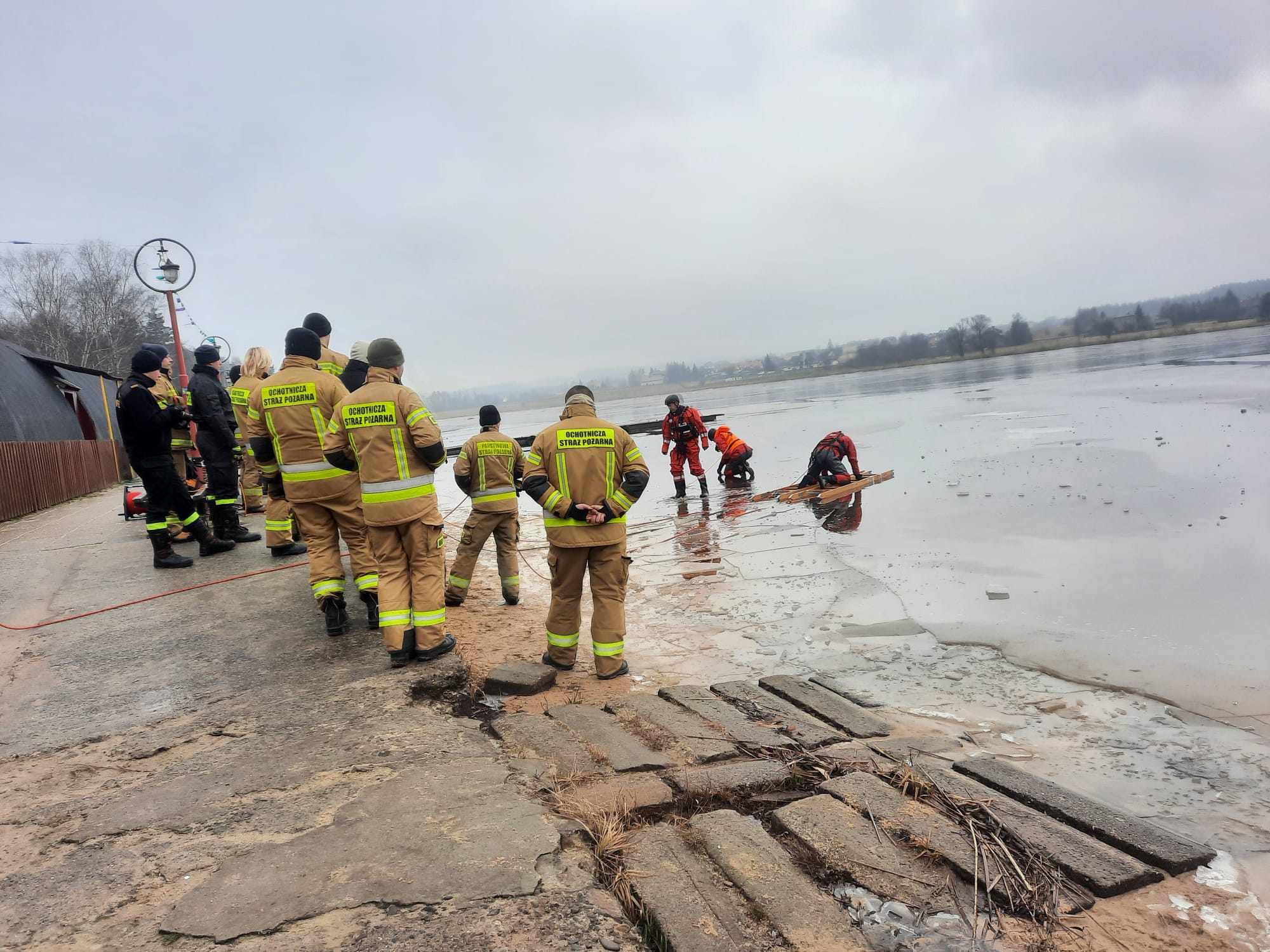 W dniach od 13 do 15 lutego 2023 wykorzystując warunki pogodowe sprzyjające utrzymywaniu się na zbiornikach wodnych pokrywy lodowej zrealizowaliśmy warsztaty z technik ratownictwa lodowego i samoratowania. W zajęciach oprócz strażaków naszej komendy brali udział druhowie powiatu chrzanowskiego z jednostek posiadających dodatkową specjalizację z ratownictwa wodnego tj. OSP Myślachowice, OSP Rozkochów, OSP Alwernia, OSP Luszowice i OSP Moczydło. Całość podzieliśmy na dwa etapy: teorię i praktykę.