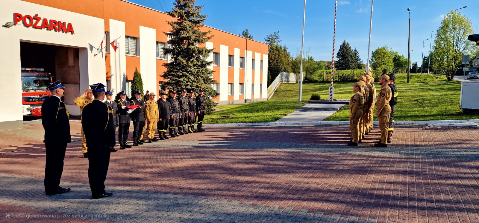 2 maja 2025 roku o godz. 8.00, w związku z obchodzonym w Polsce Dniem Flagi Rzeczypospolitej Polskiej, w Komendzie Powiatowej Państwowej Straży Pożarnej w Chrzanowie odbyła się uroczysta zmiana służby, podczas której dokonano podniesienia flagi państwowej na maszt.